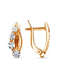 Серьги серебро 925 пробы, покрытие - золочение, отделка - алмазная грань, вставка - фианит (недрагоценный камень)