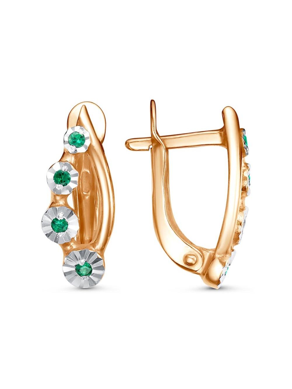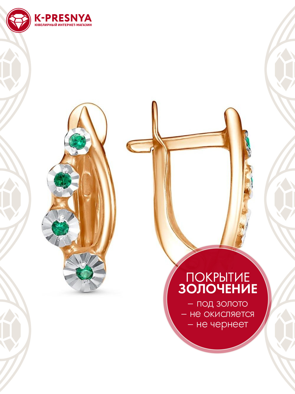 Серьги серебро 925 пробы, покрытие - золочение, отделка - алмазная грань, вставка - искусственная шпинель