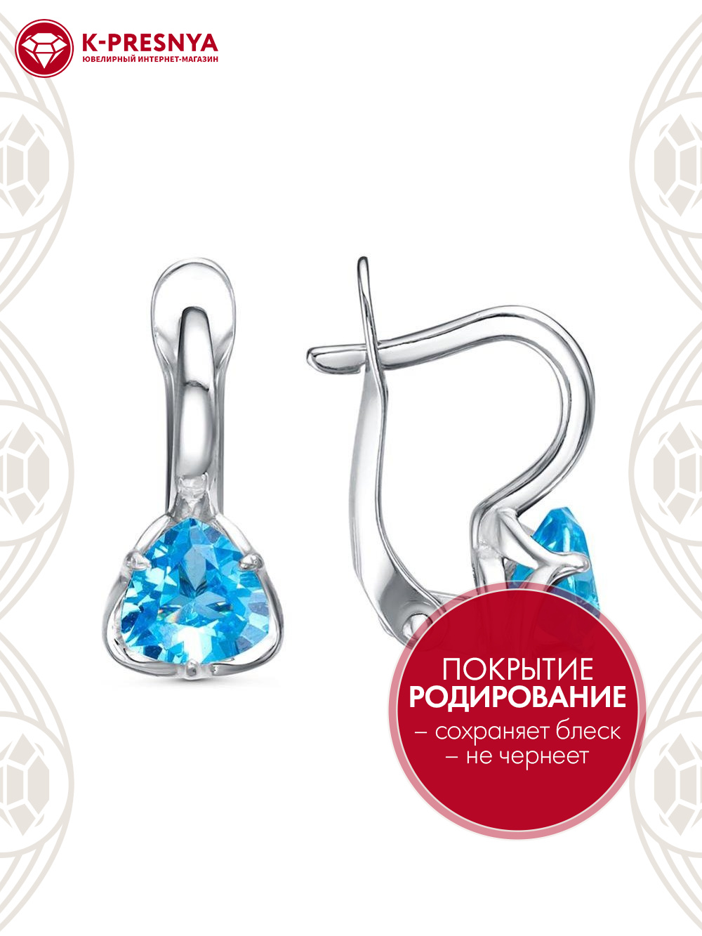 Серьги серебро 925 пробы, покрытие - родирование, вставка - фианит (недрагоценный камень)