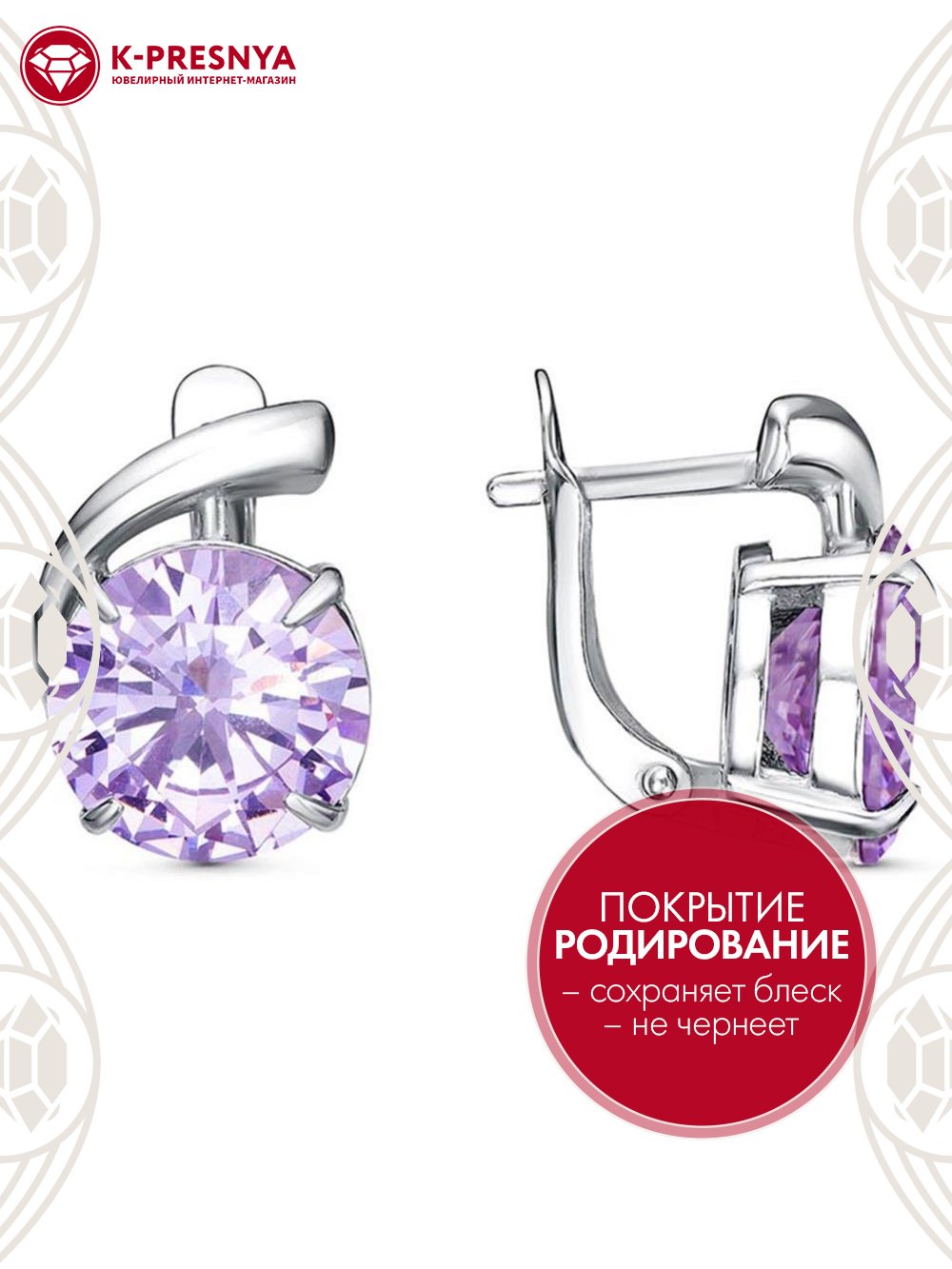 Серьги серебро 925 пробы, покрытие - родирование, вставка - фианит (недрагоценный камень)