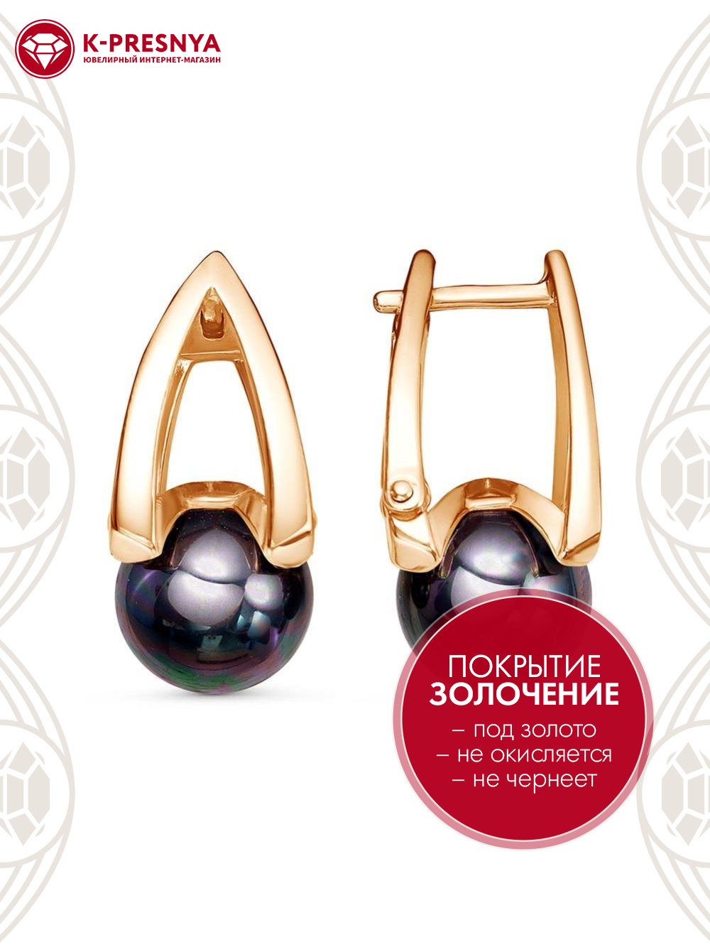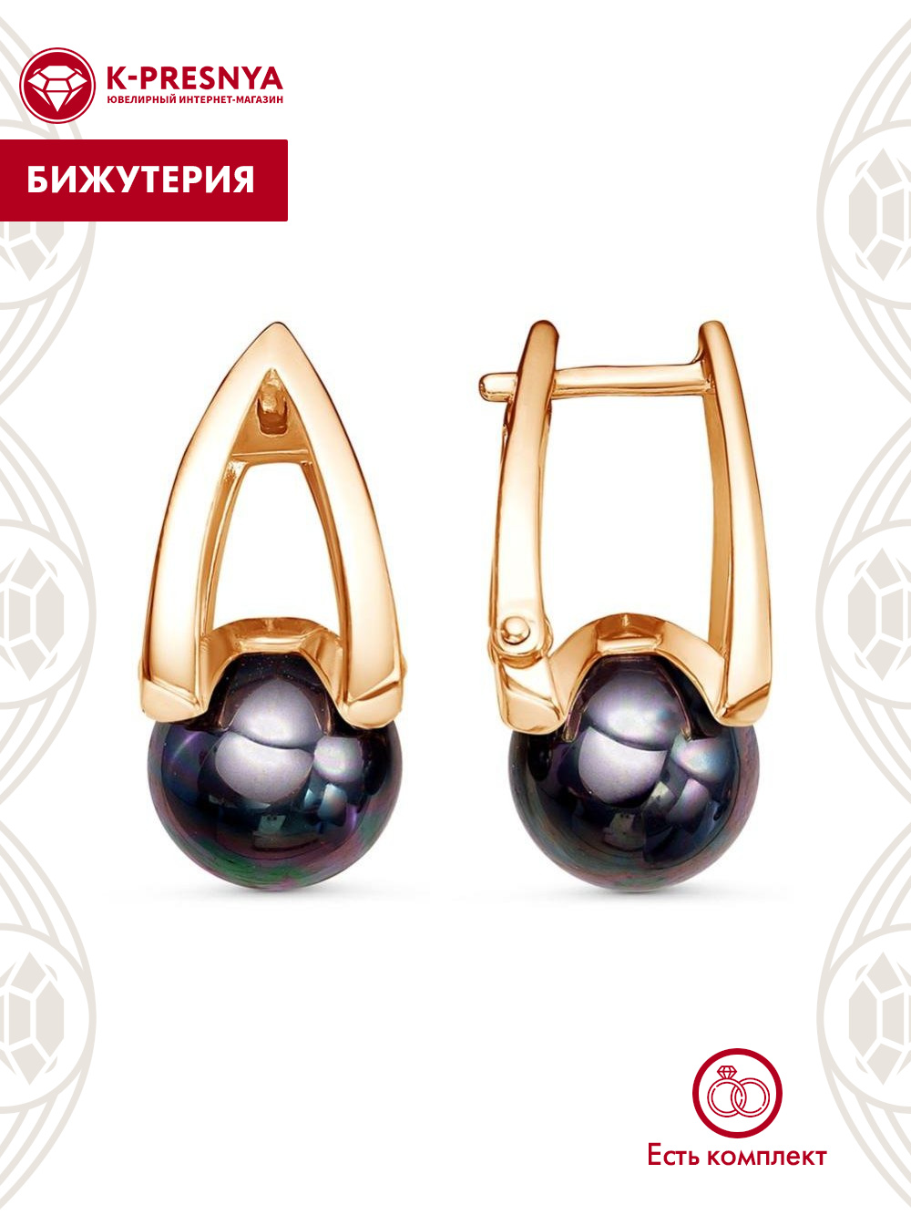 Серьги бижутерия, покрытие - золочение, вставка - имитация жемчуга