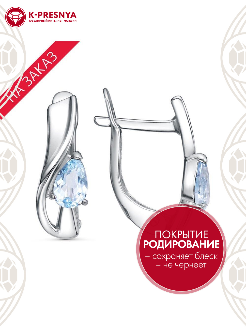 Серьги серебро 925 пробы, покрытие - родирование, вставка - голубой топаз (полудрагоценный камень)