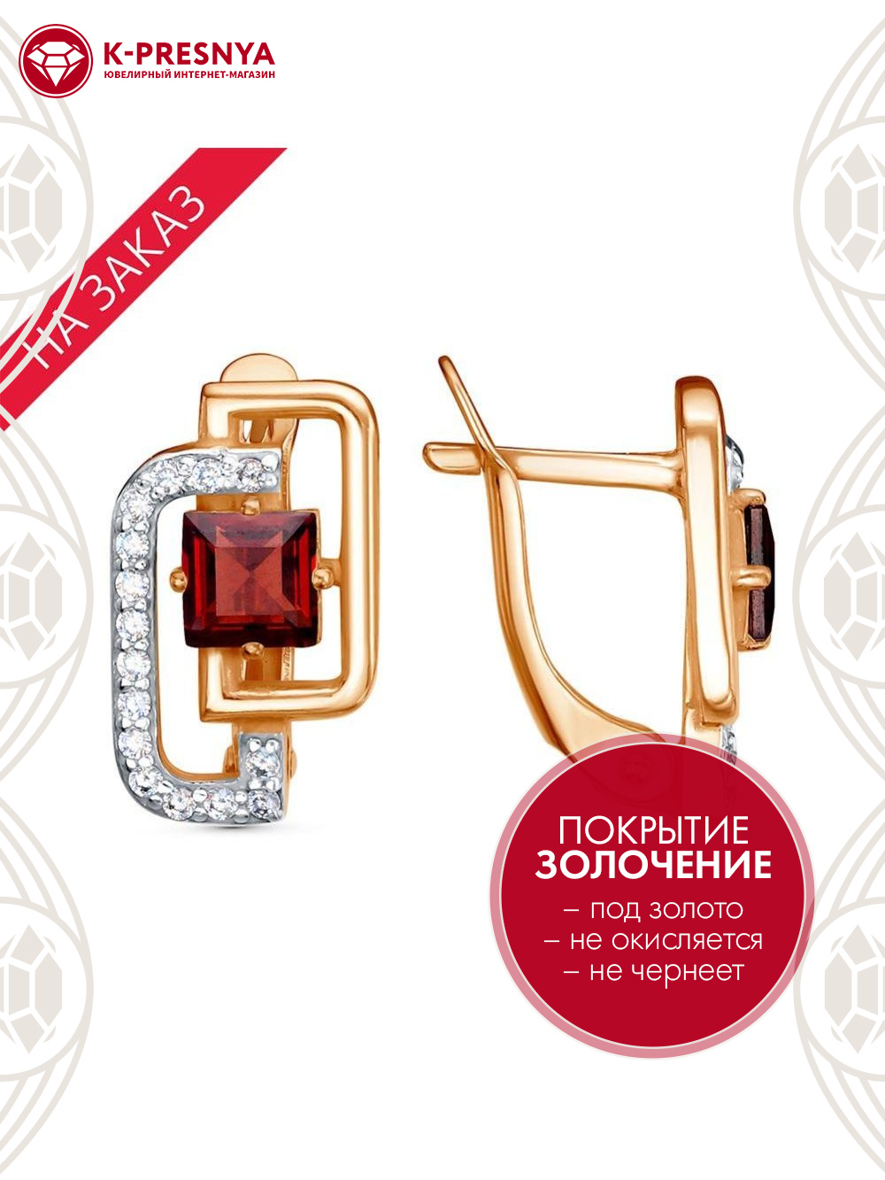Серьги серебро 925 пробы, покрытие - золочение, выборочное родирование