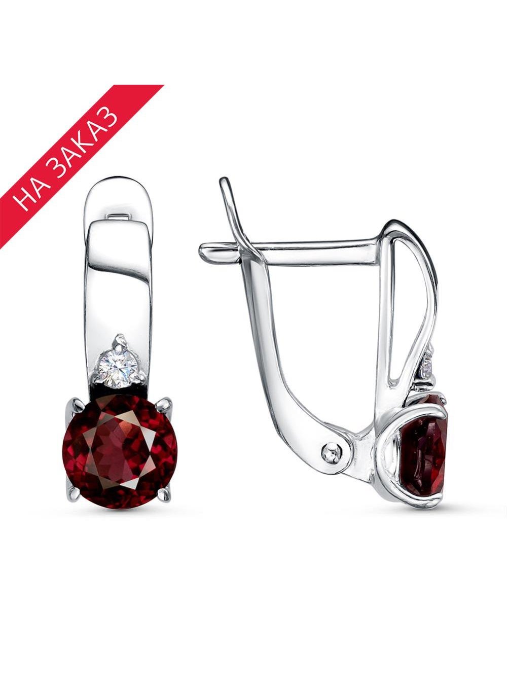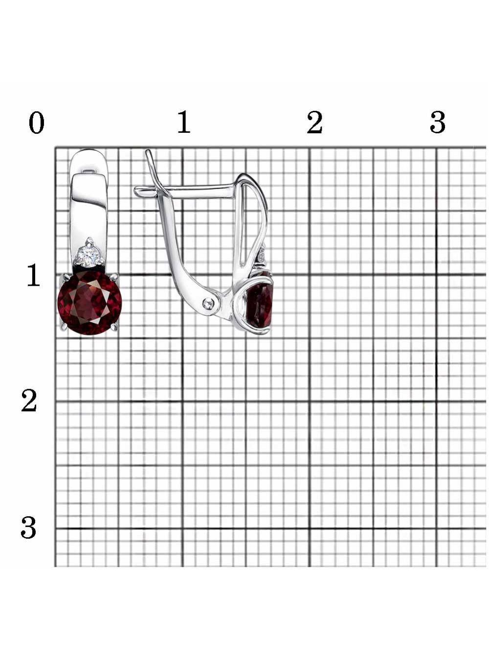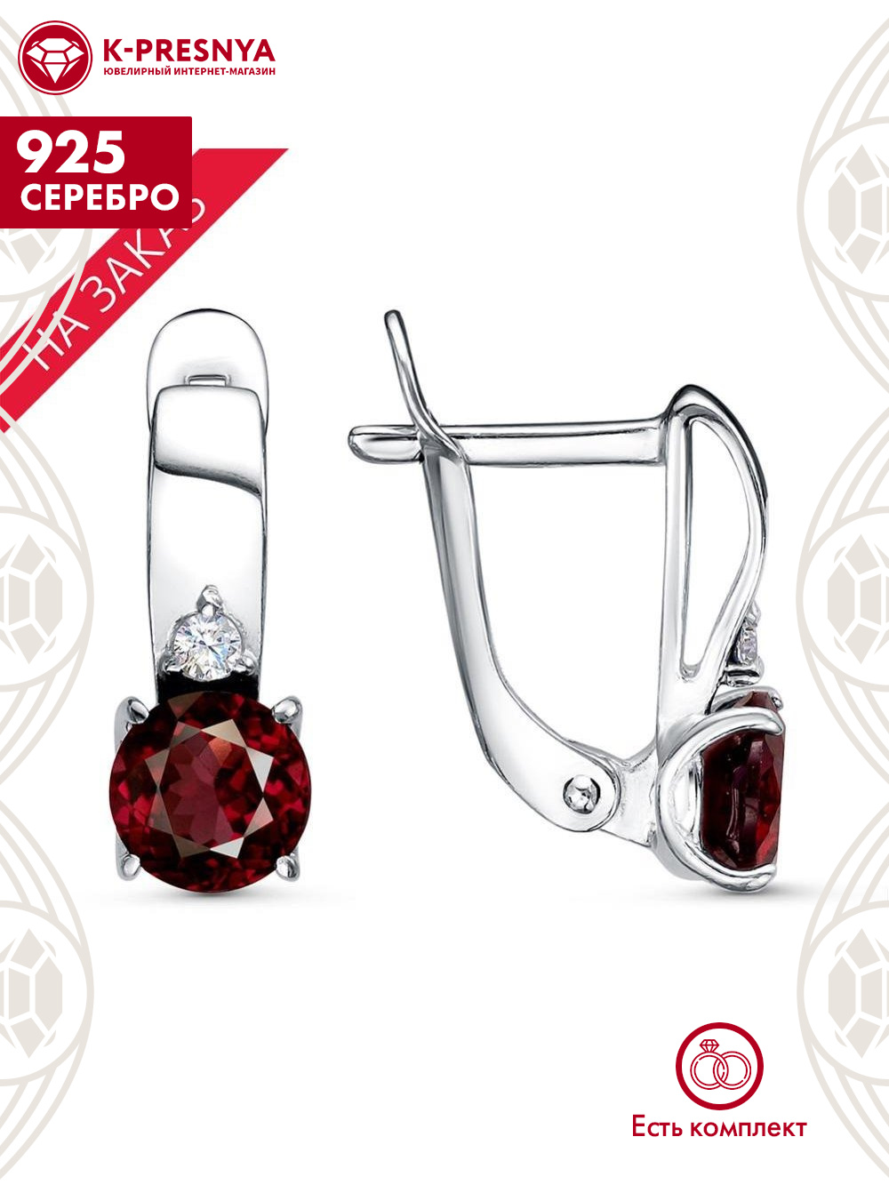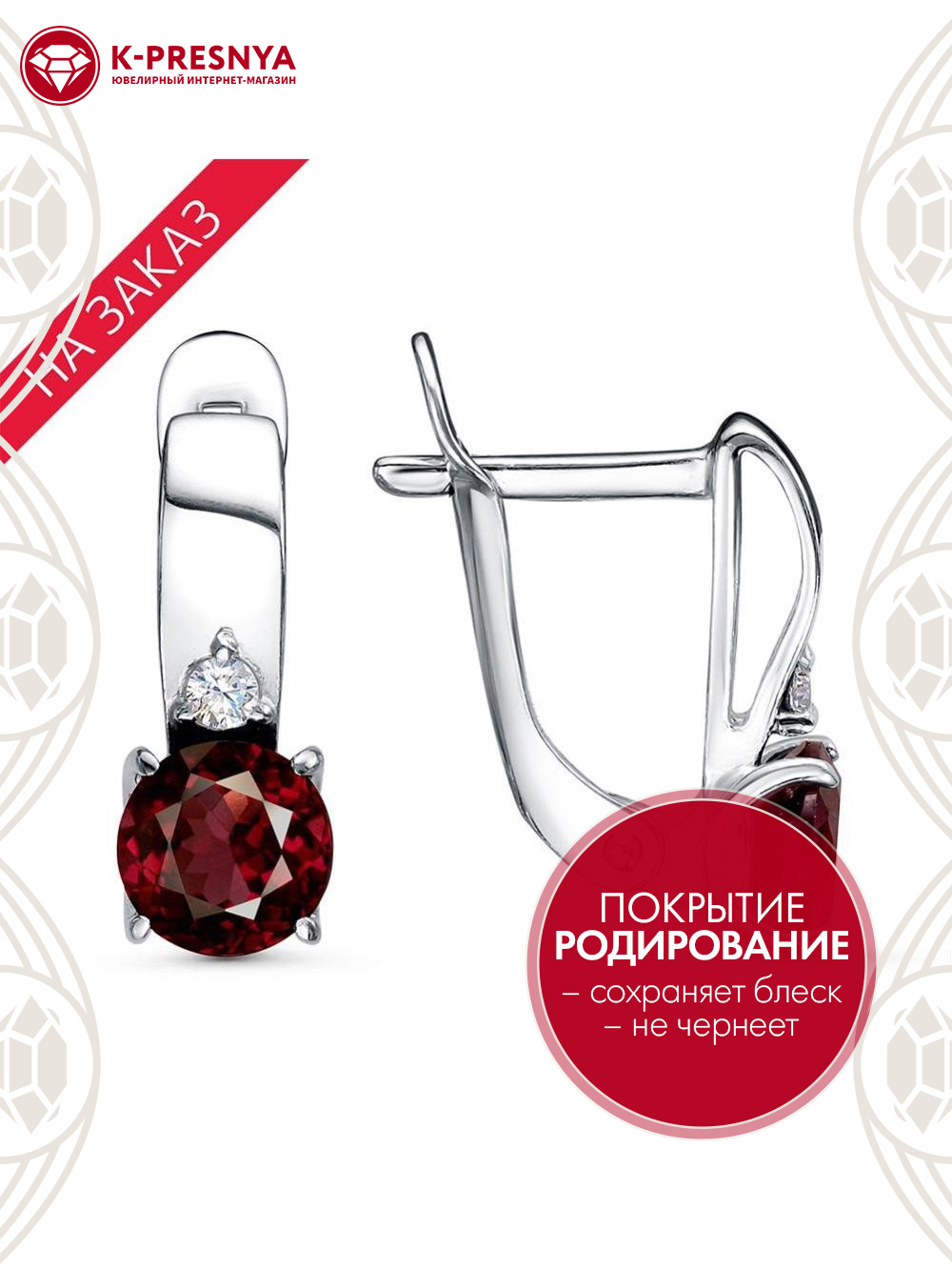 Серьги серебро 925 пробы, покрытие - родирование, вставка - гранат (полудрагоценный камень), фианит (недрагоценный камень)