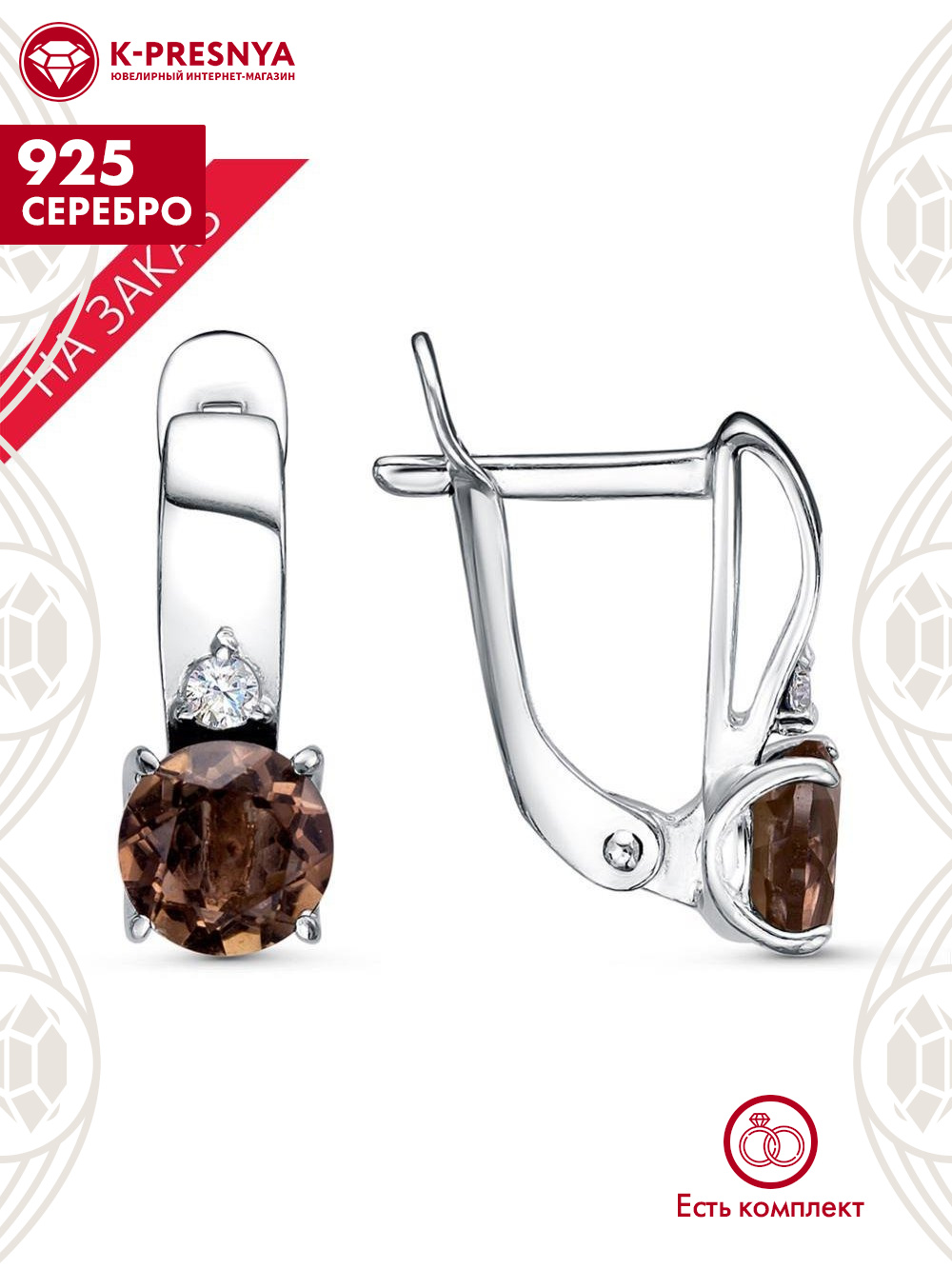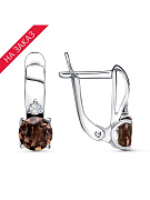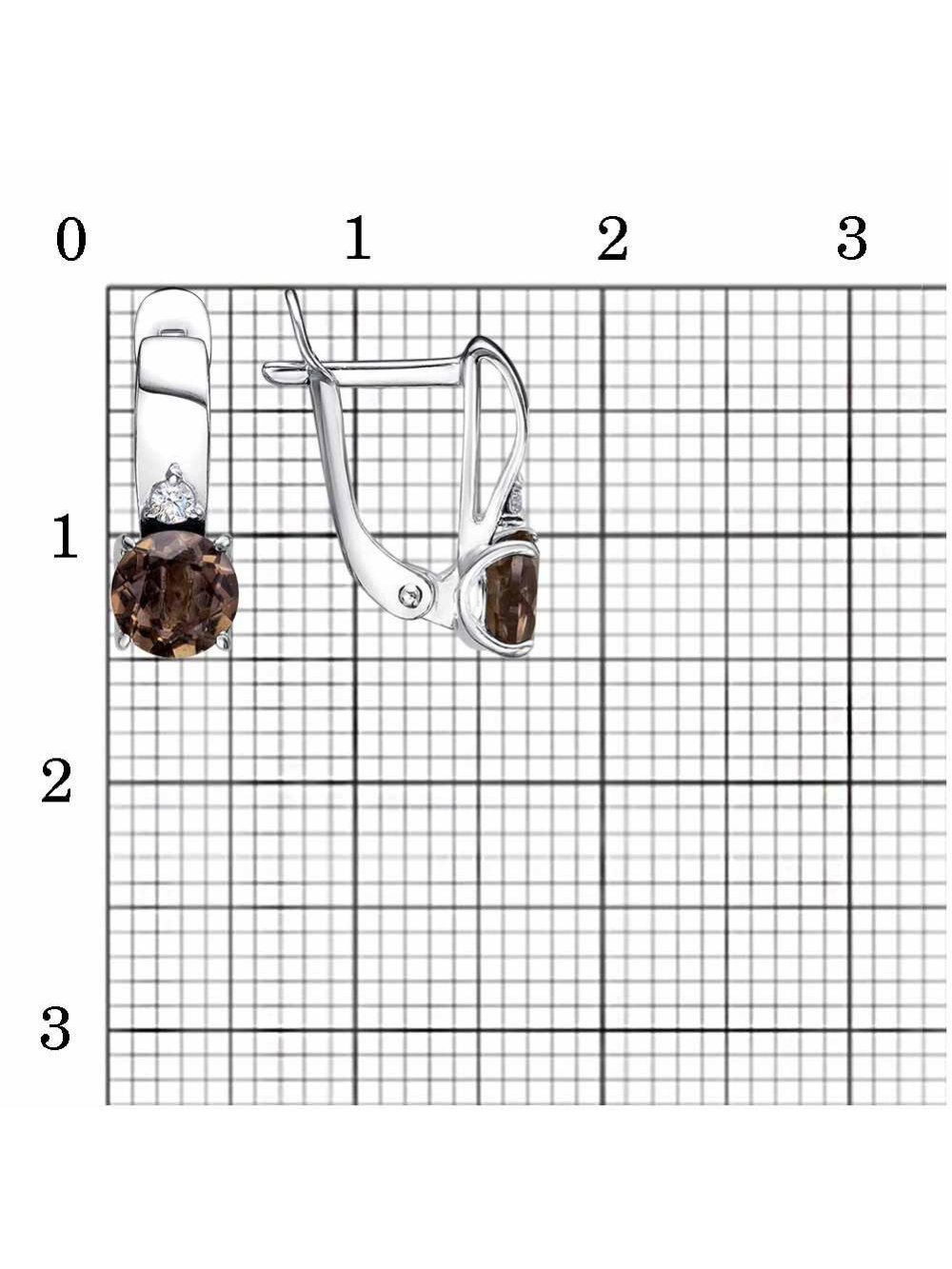 Серьги серебро 925 пробы, покрытие - родирование, вставка - дымчатый кварц, фианит (недрагоценный камень)