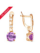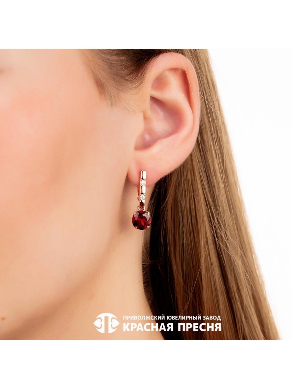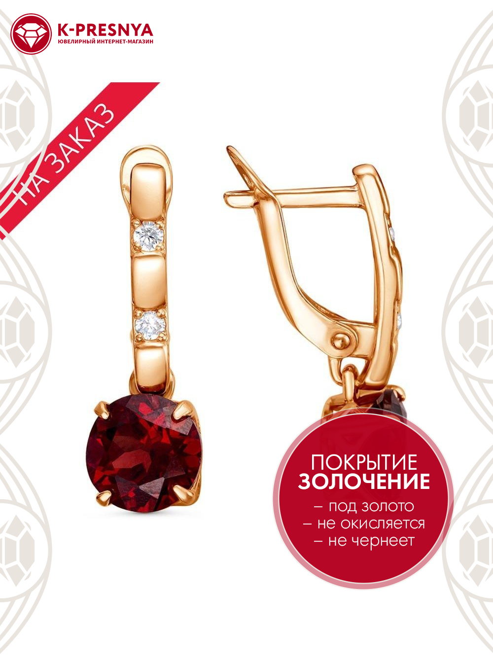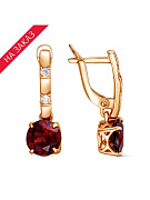Серьги серебро 925 пробы, покрытие - золочение, вставка - гранат (полудрагоценный камень), фианит (недрагоценный камень)
