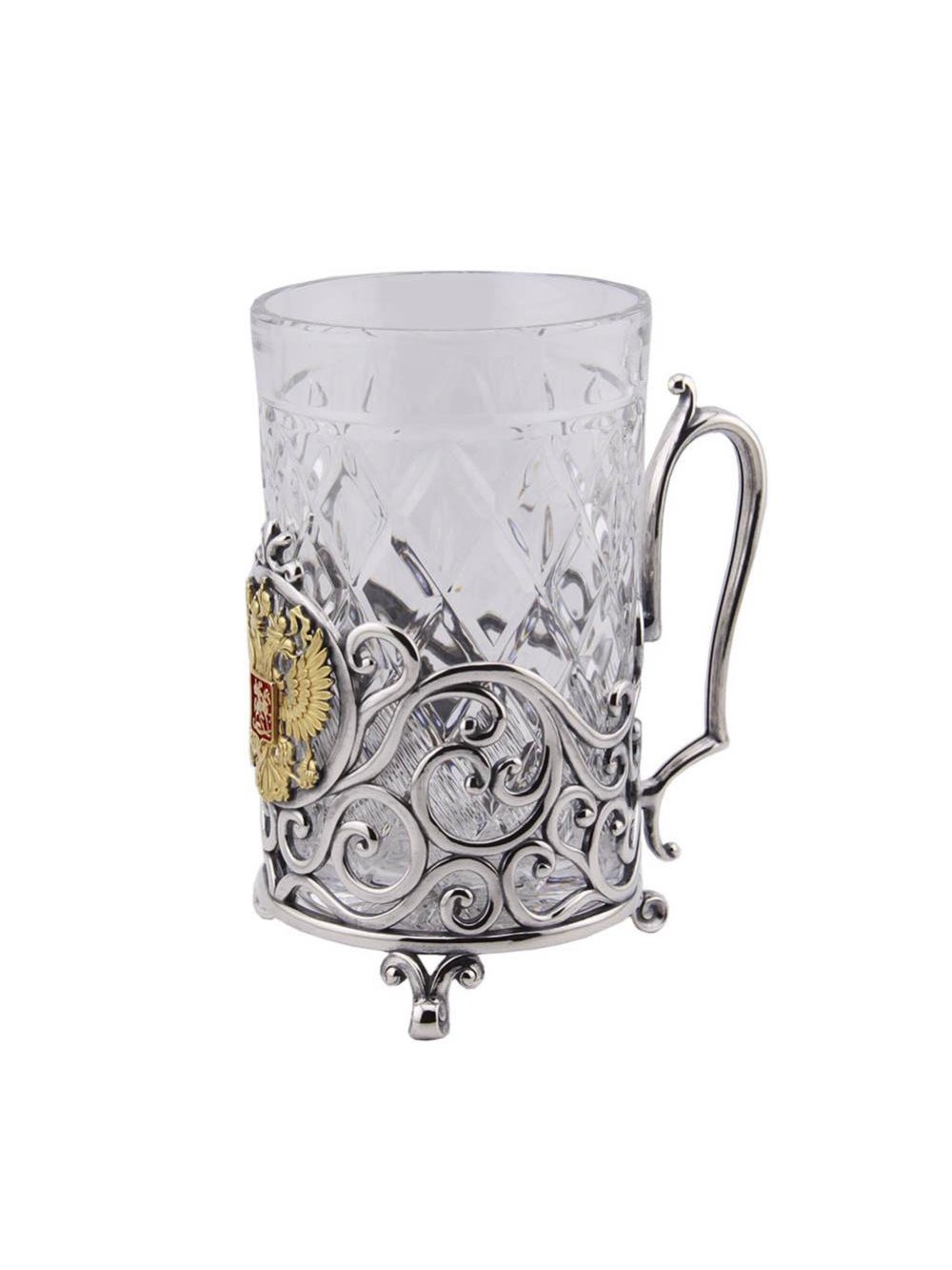 Серебряный подстаканник «Герб России» с эмалью