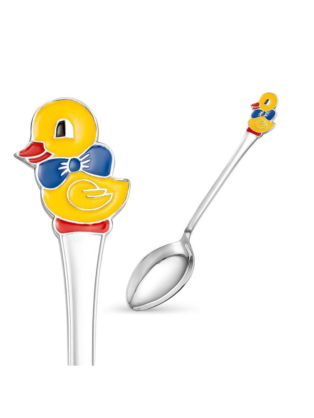 Серебряная чайная ложка «Уточка» с эмалью