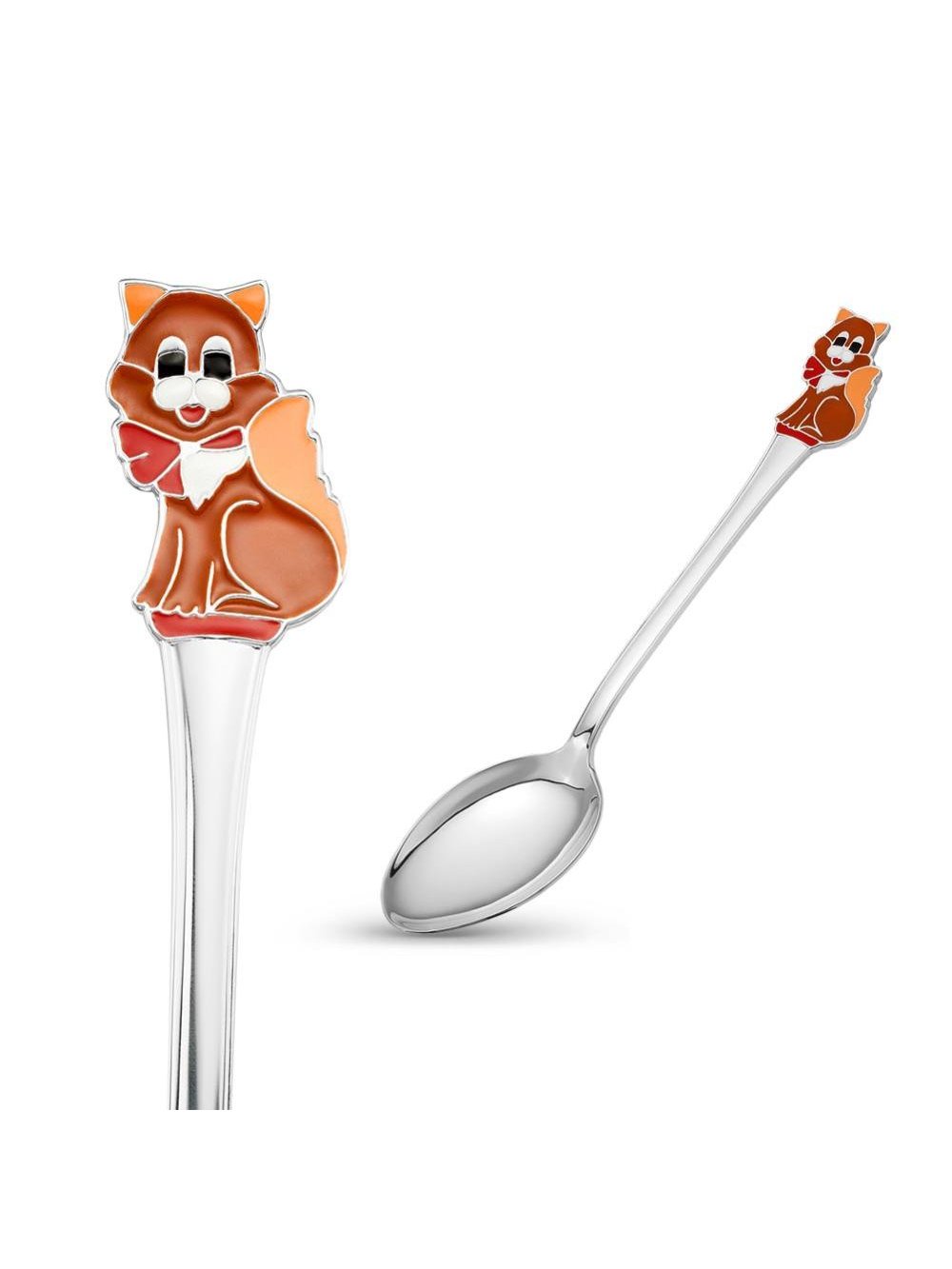 Ложка чайная "кошка" серебро 925 пробы, без покрытия, отделка - эмаль, без вставок