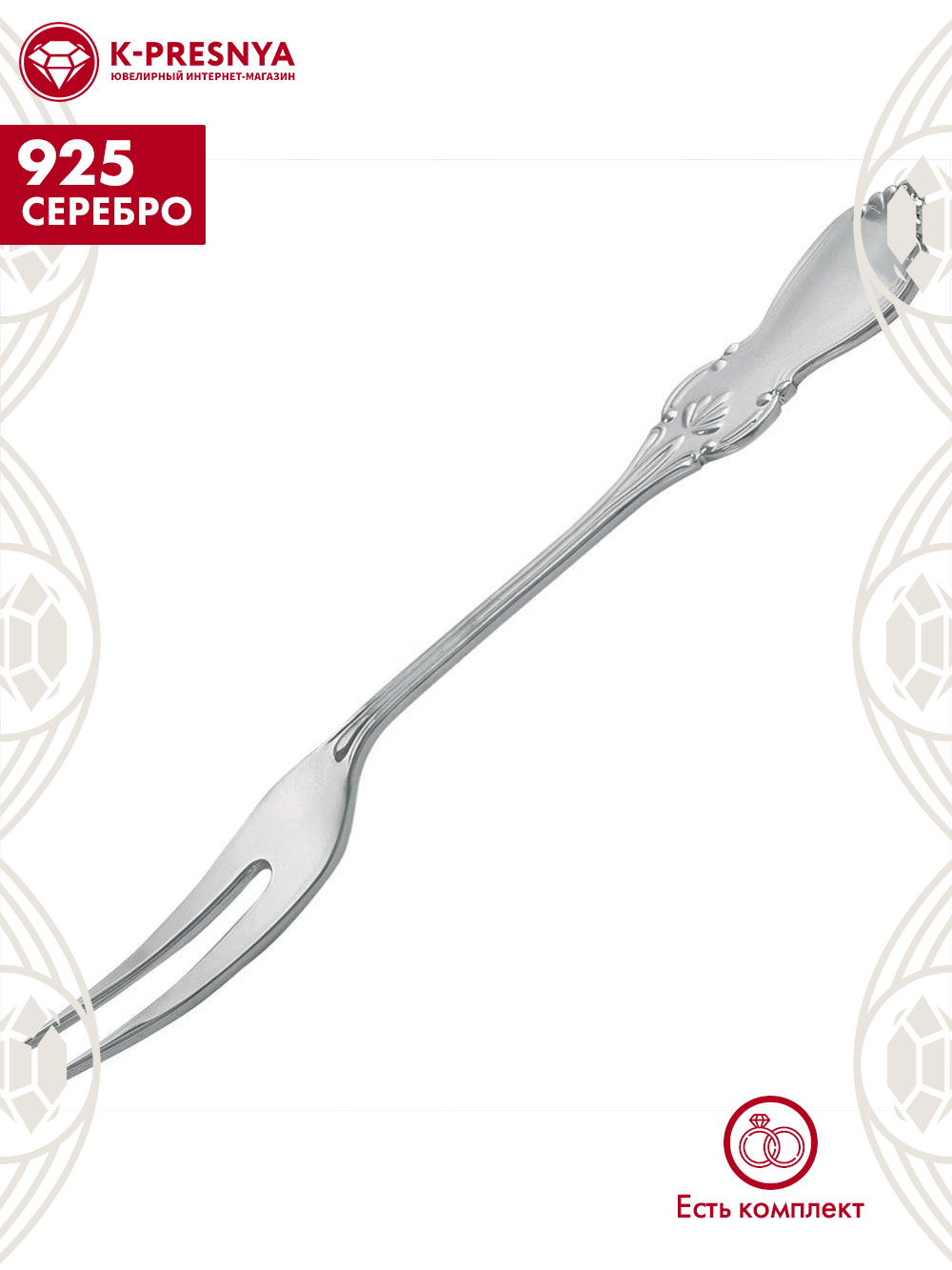 Вилка для лайма "вензель" серебро 925 пробы, без покрытия, без вставок