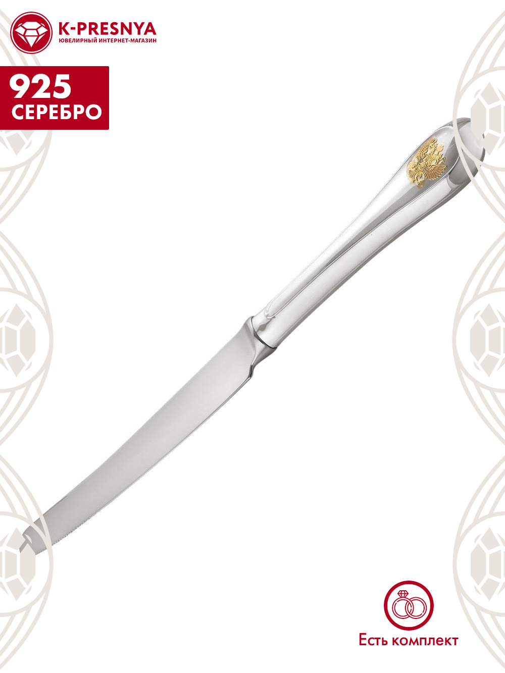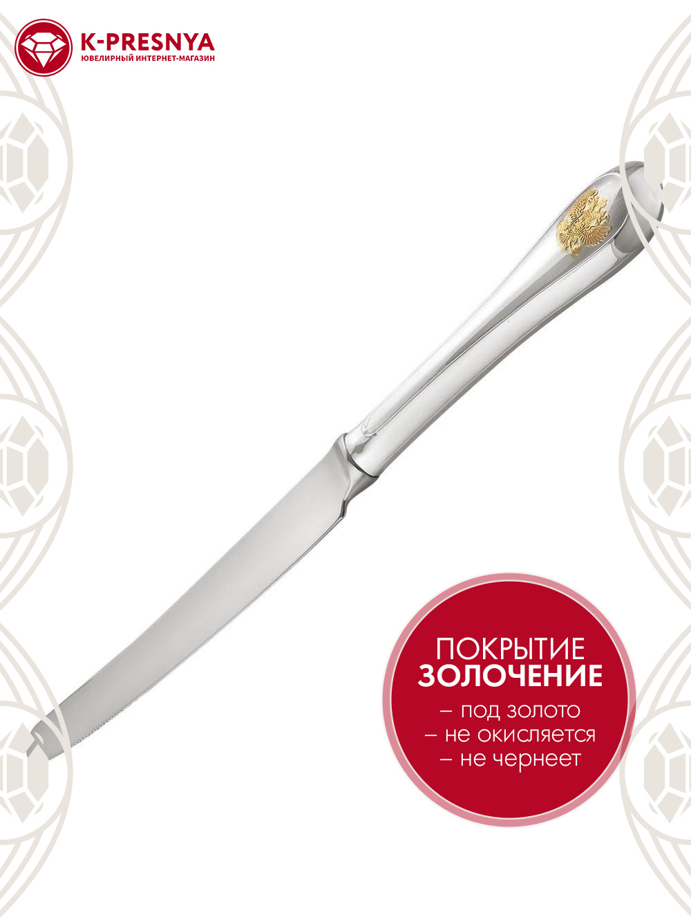 Нож столовый "отечество" серебро 925 пробы, покрытие - выборочное золочение, без вставок