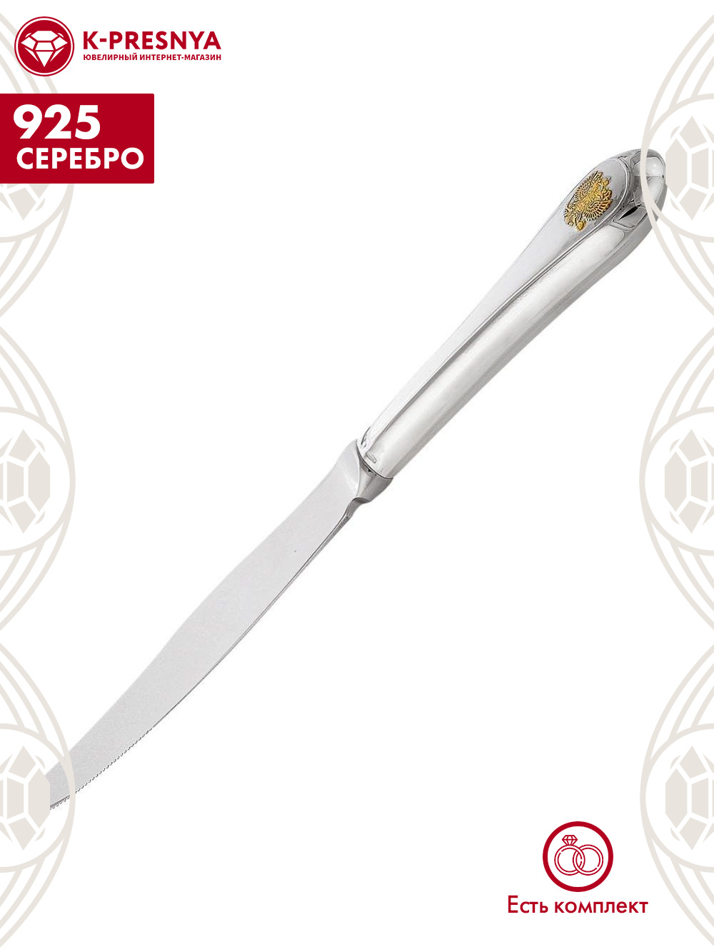Нож десертный "отечество" серебро 925 пробы, покрытие - выборочное золочение, без вставок