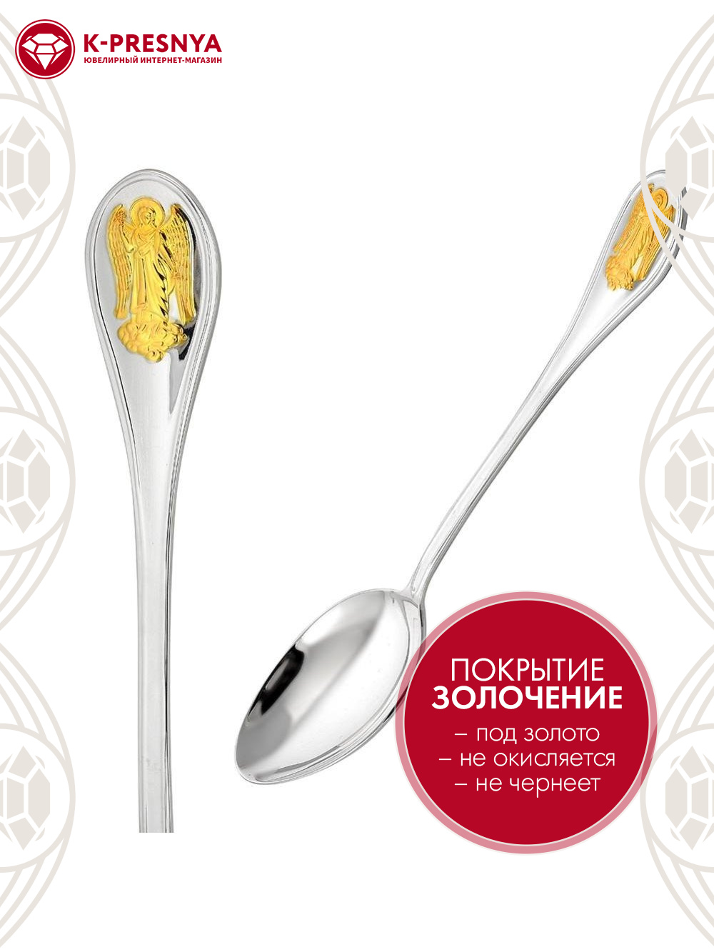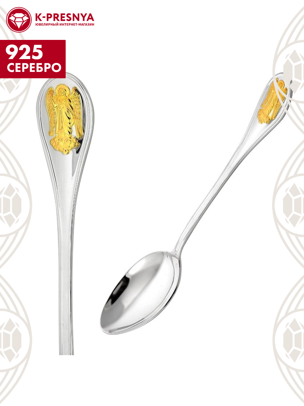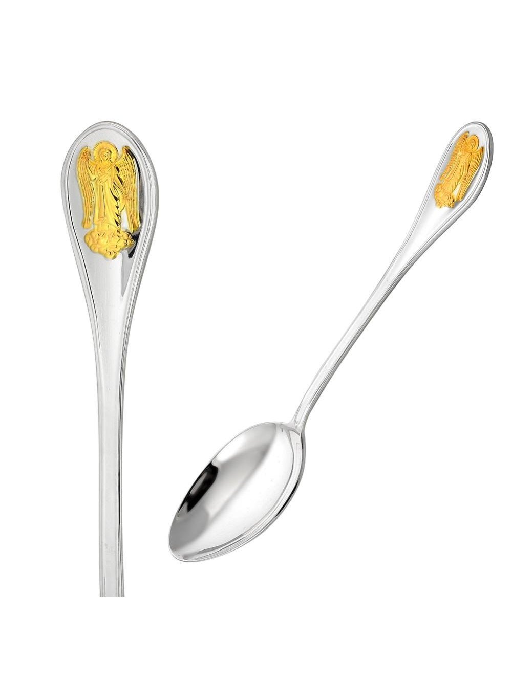 Ложка чайная "ангел-хранитель" серебро 925 пробы, покрытие - выборочное золочение, без вставок