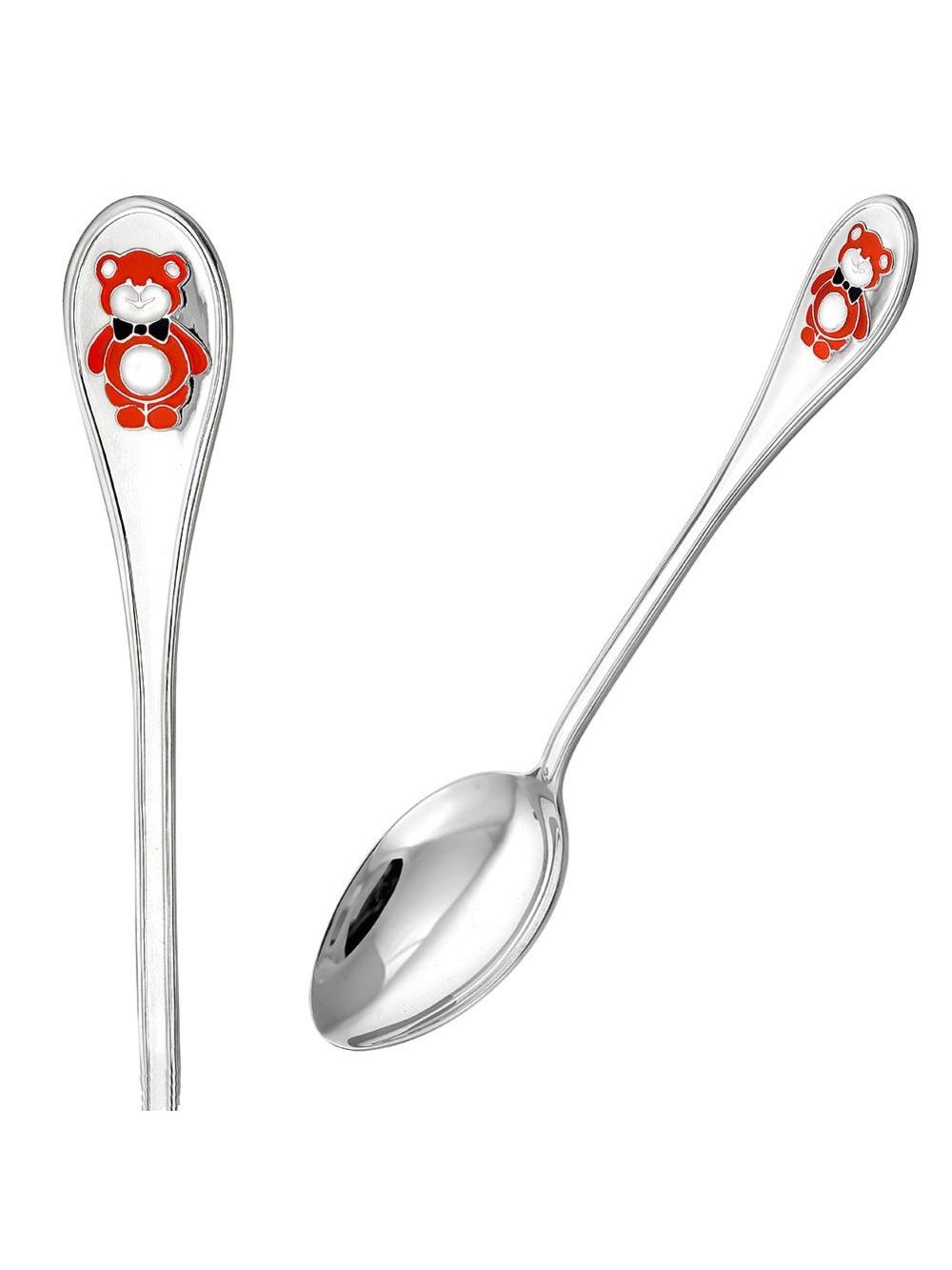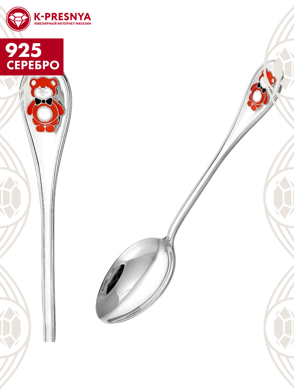 Ложка чайная "мишка" серебро 925 пробы, без покрытия, отделка - эмаль, без вставок