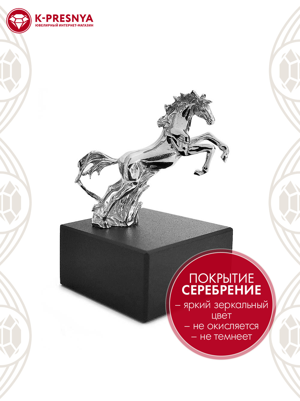 Сувенир "лошадь" бижутерия, покрытие - серебрение с оксидированием, вставка - стекло ювелирное собственной огранки
