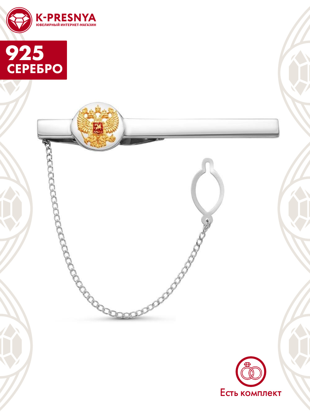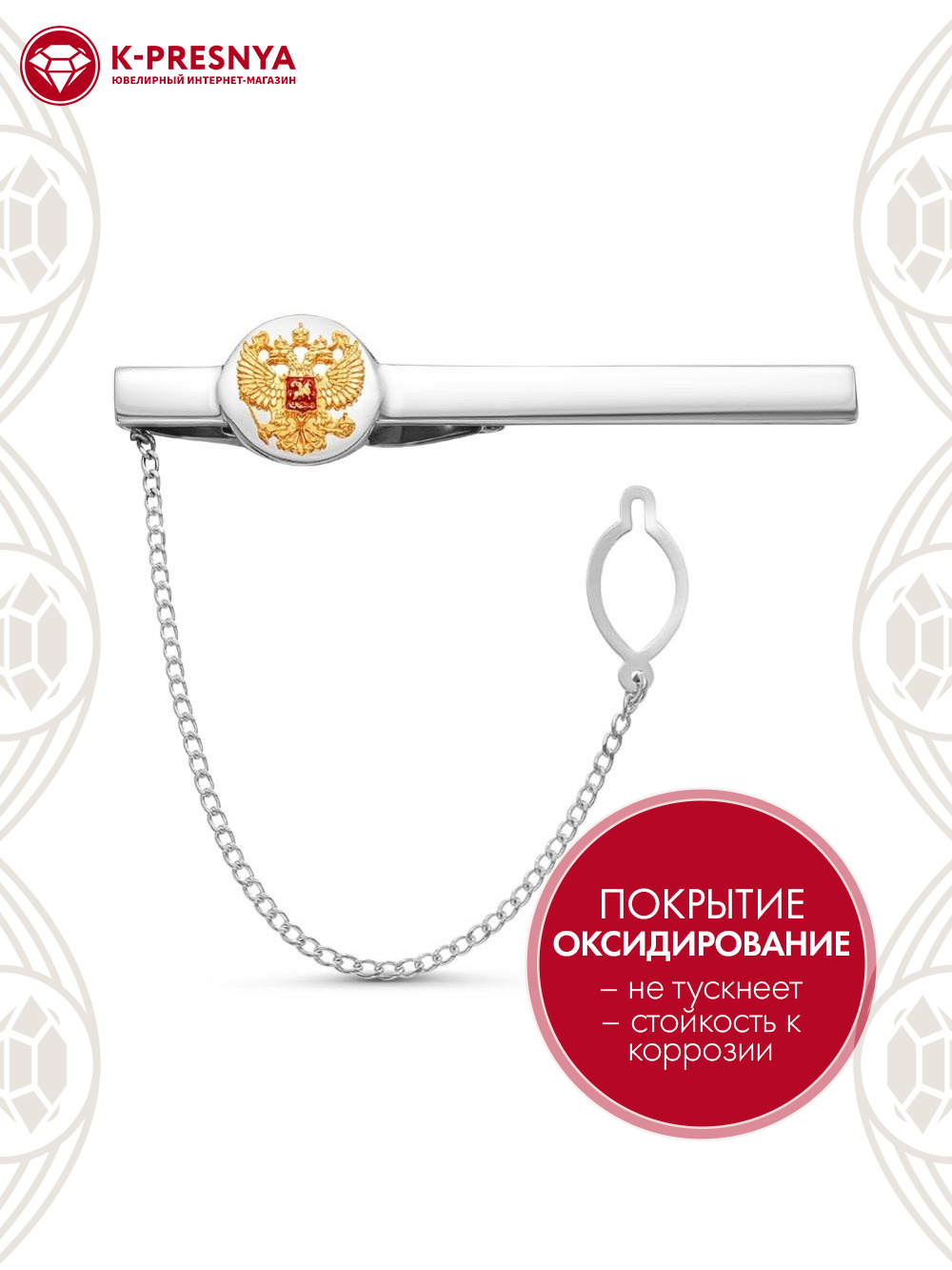 Зажим серебро 925 пробы, покрытие - оксидирование, выборочное золочение, отделка - эмаль, без вставок