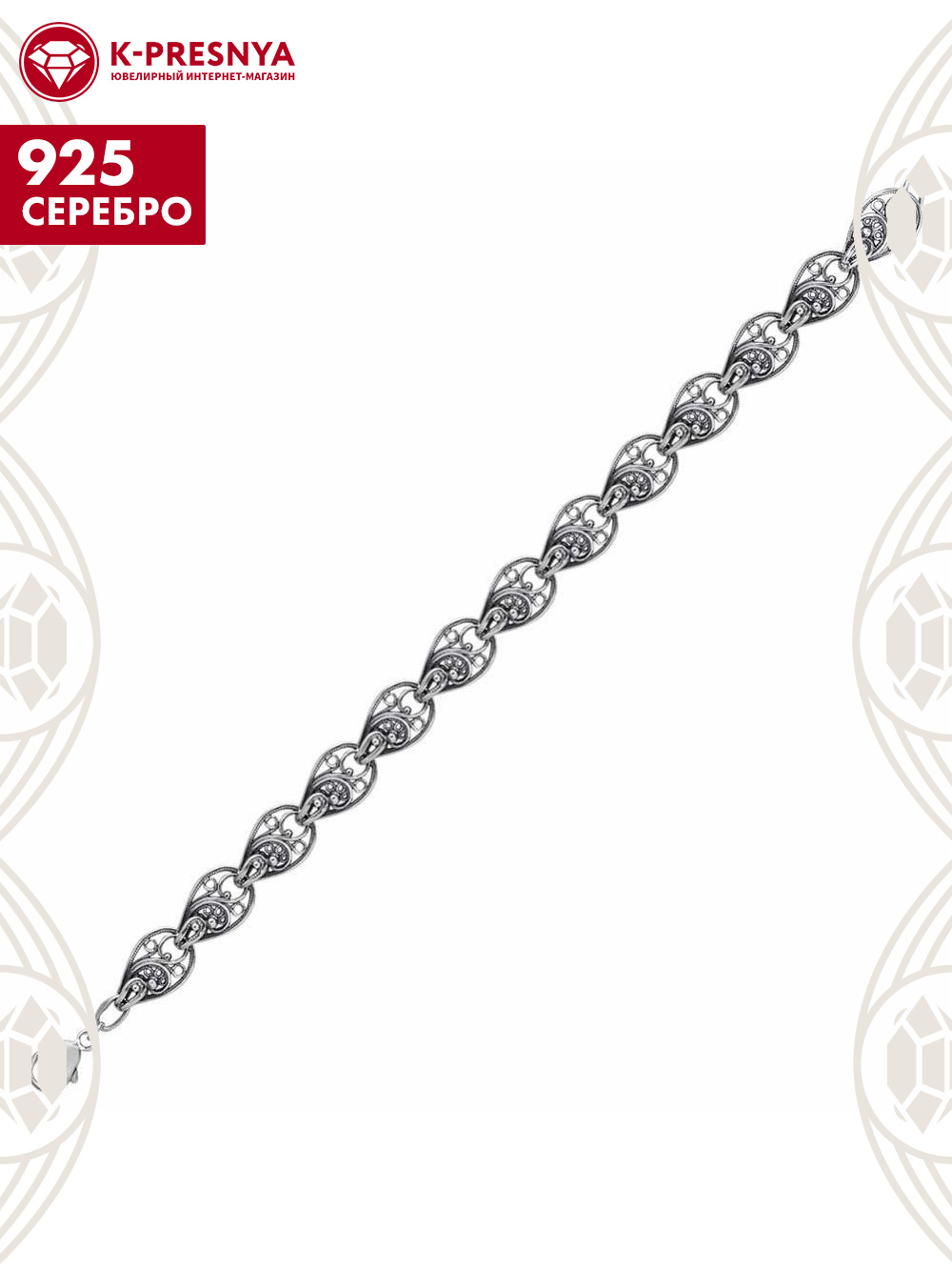Браслет серебро 925 пробы, покрытие - оксидирование, без вставок
