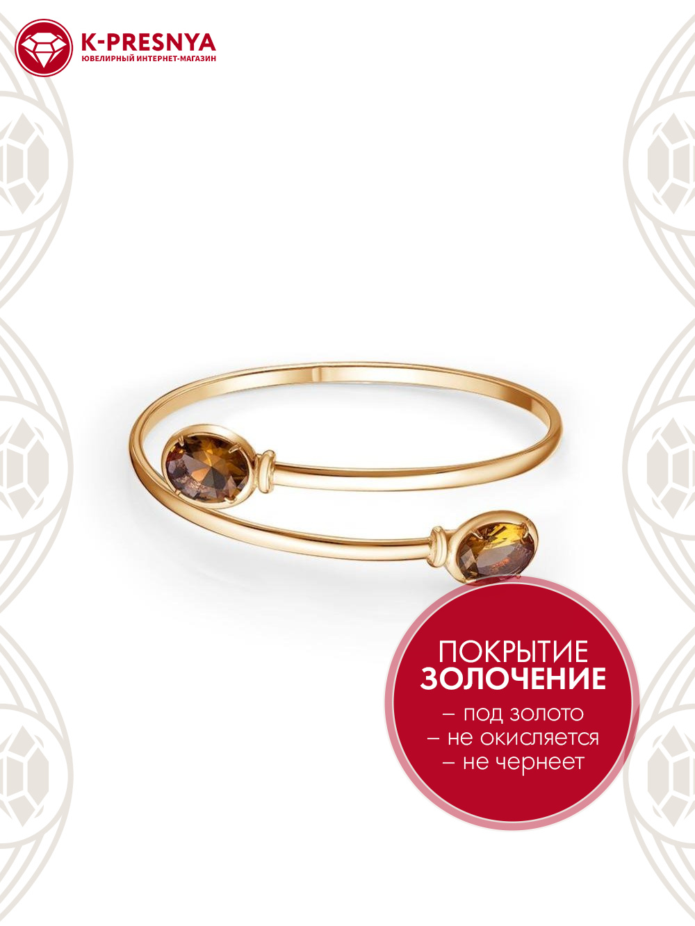 Браслет бижутерия, покрытие - золочение, вставка - искусственный султанит