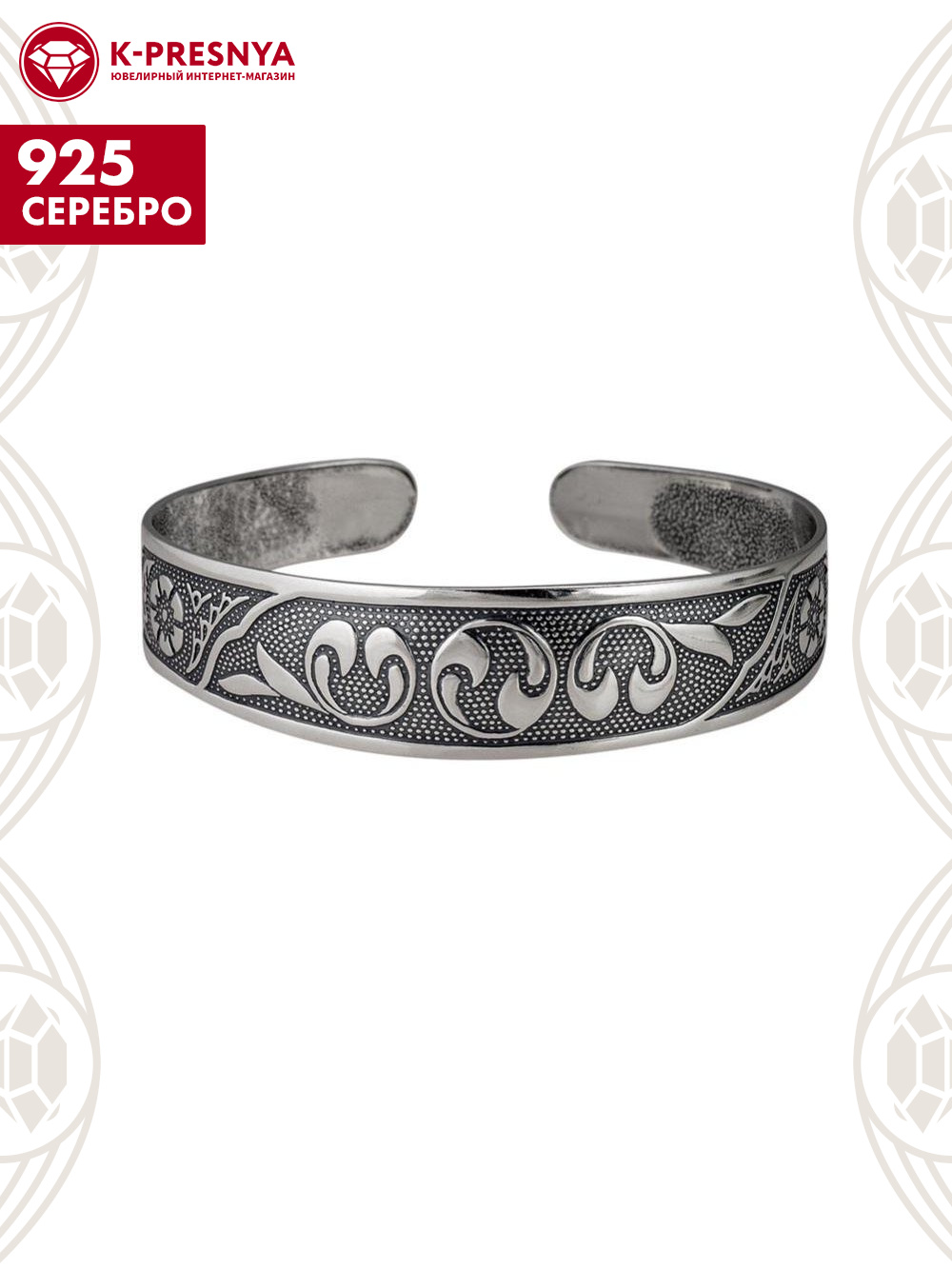 Браслет серебро 925 пробы, покрытие - оксидирование, без вставок