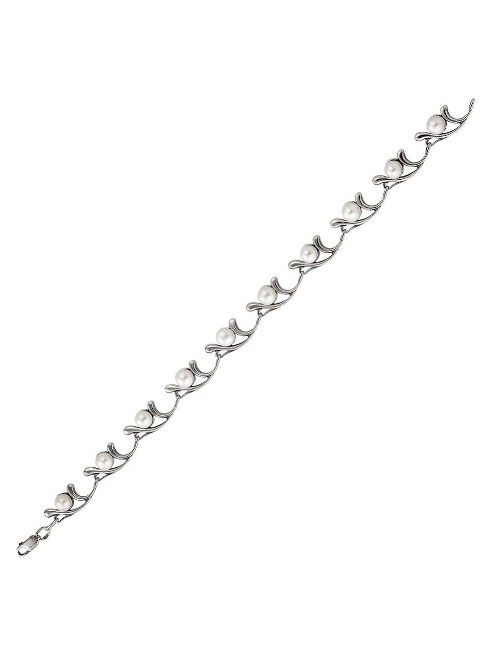 Браслет серебро 925 пробы, покрытие - оксидирование, вставка - культивированный жемчуг