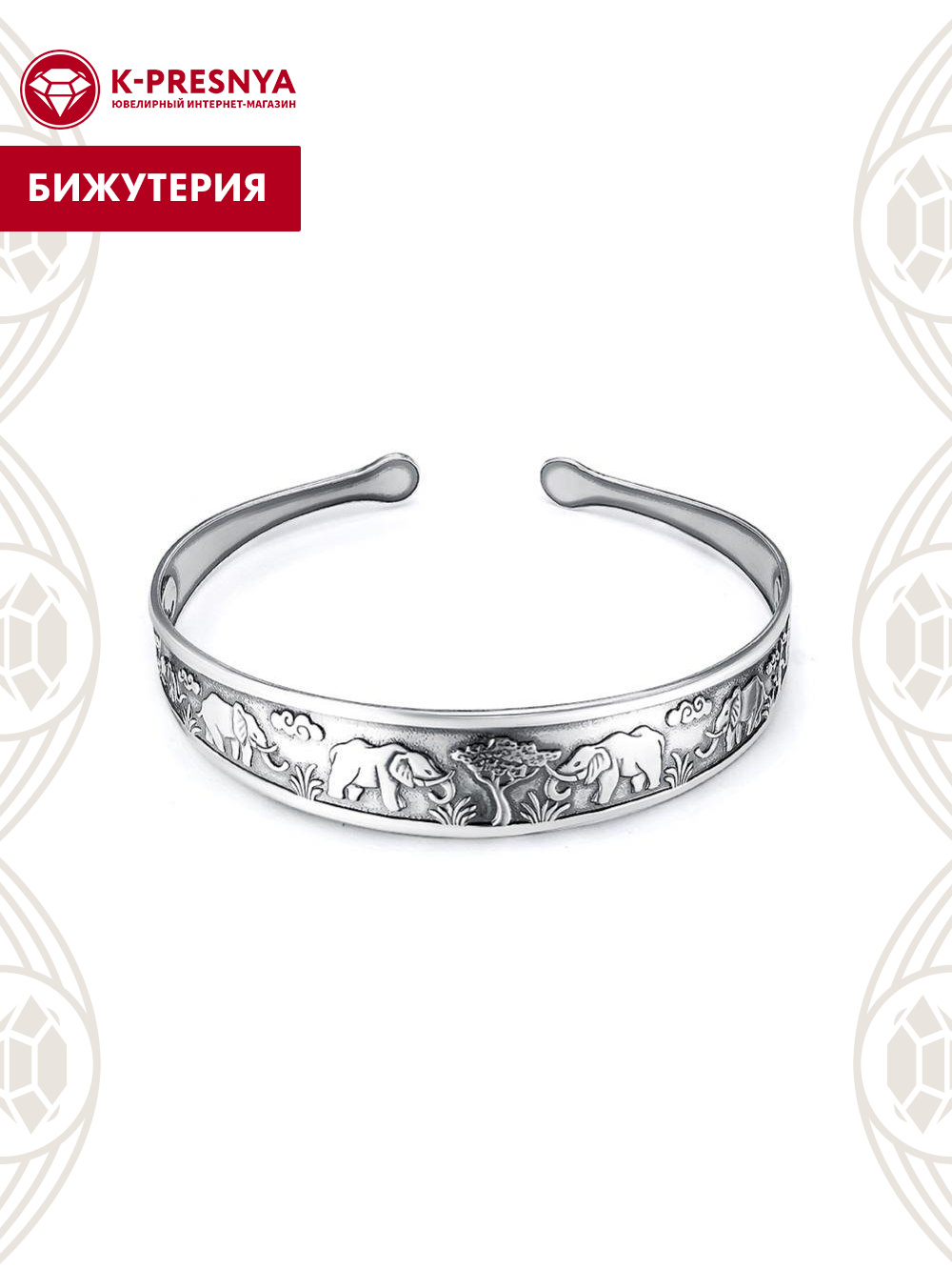 Браслет из цветного металла с изображением слонов считается символом священной мудрости, достоинства и благоразумия. Он станет счастливым талисманом, приносящим удачу и защищающим от неприятностей.