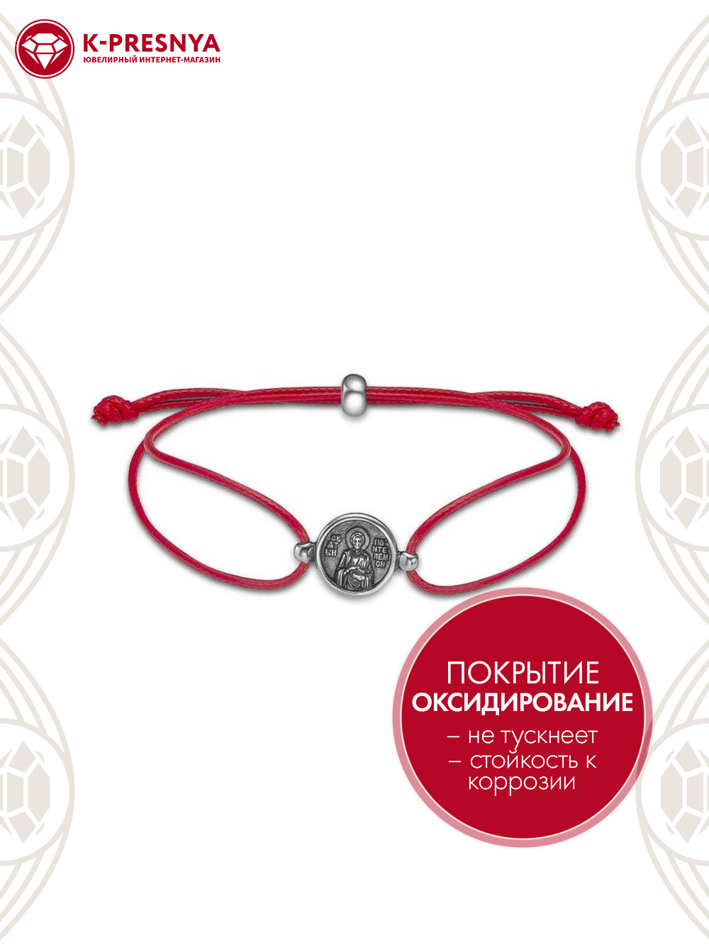 Браслет "пантелеймон целитель" серебро 925 пробы, покрытие - оксидирование, без вставок