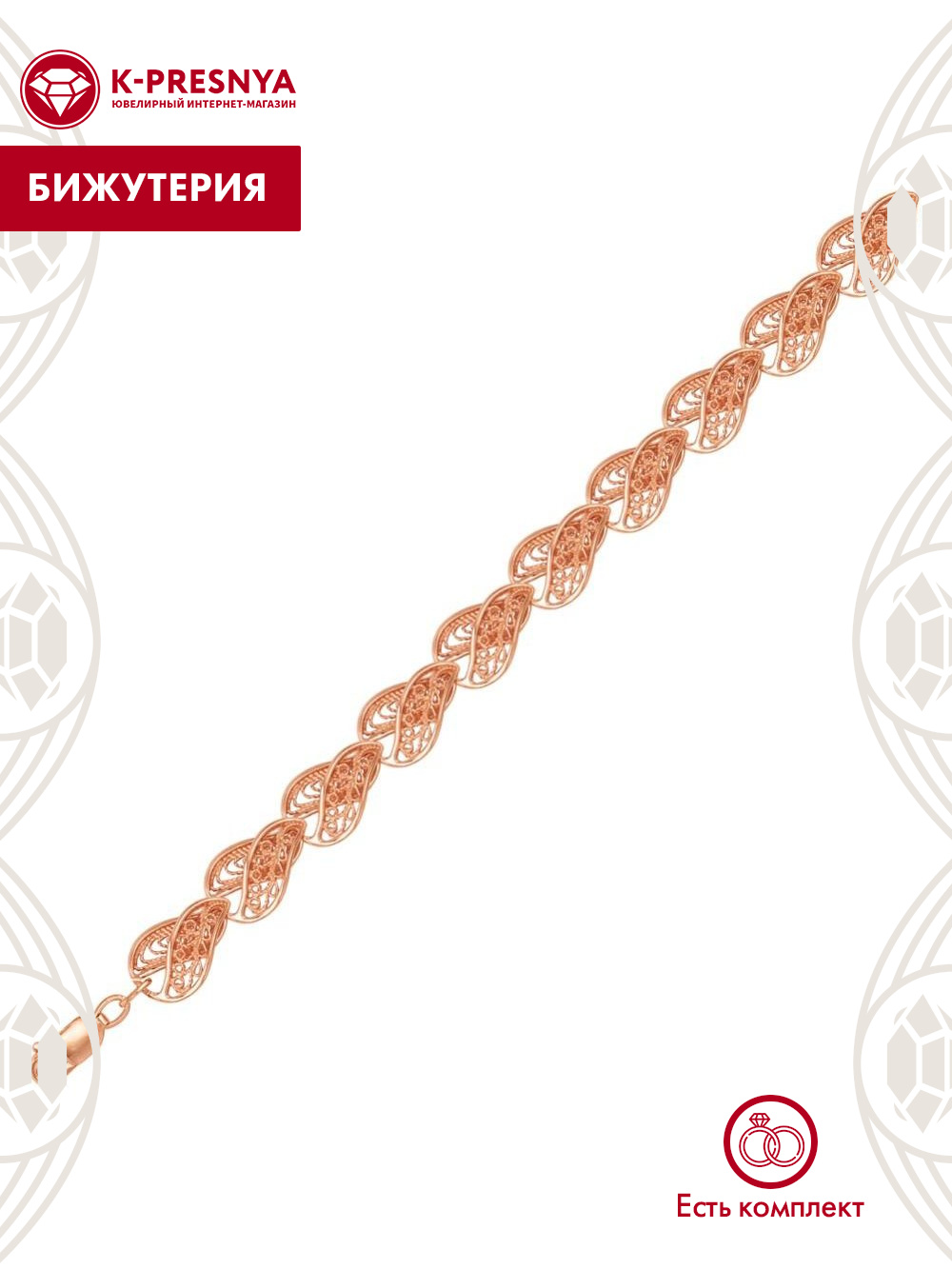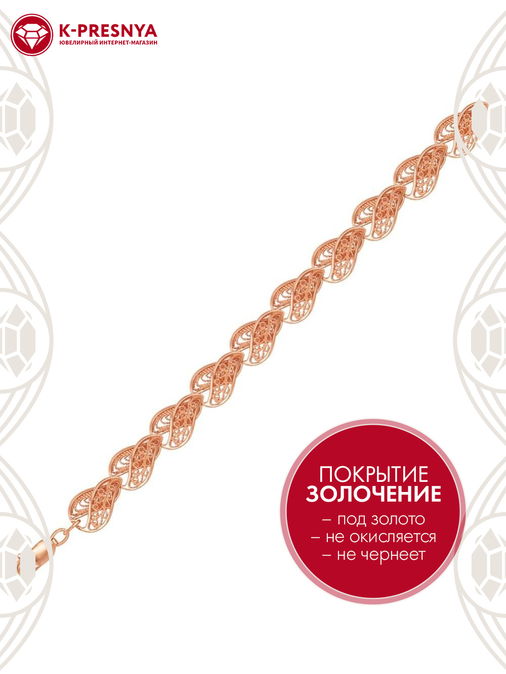 Браслет бижутерия, покрытие - золочение, без вставок