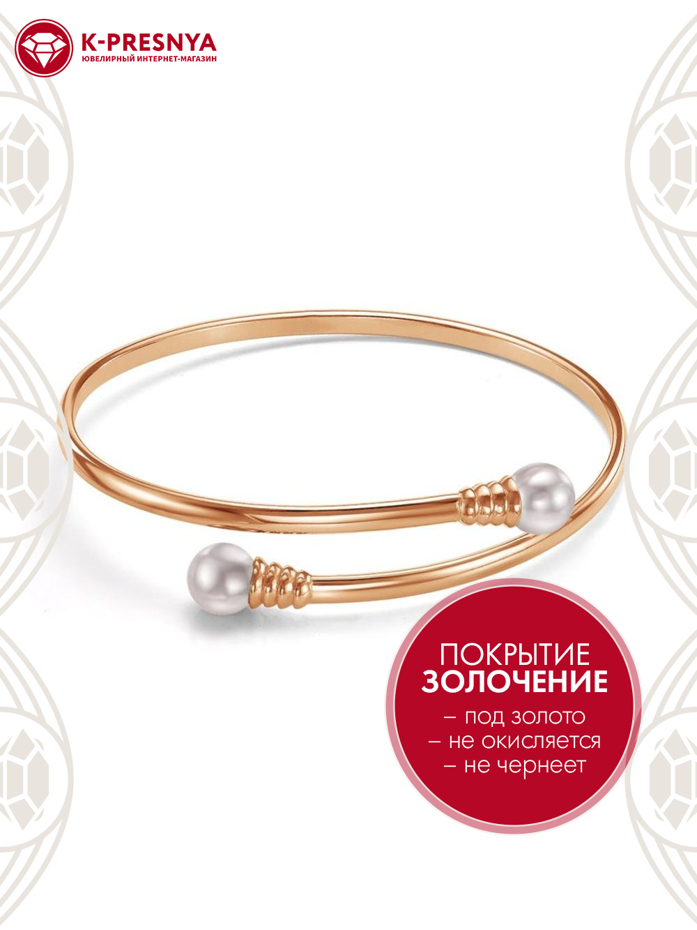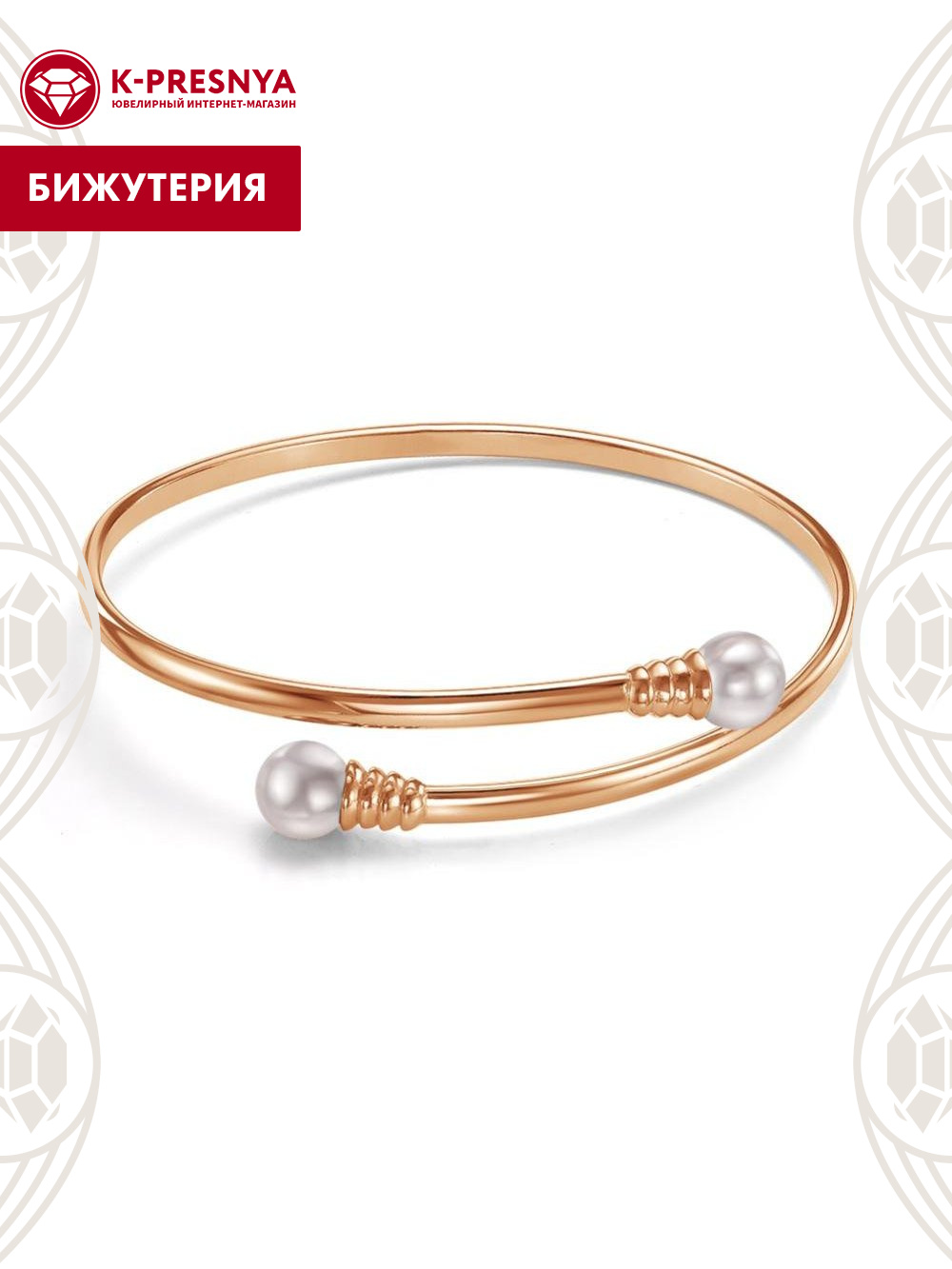 Браслет бижутерия, покрытие - золочение, вставка - имитация жемчуга