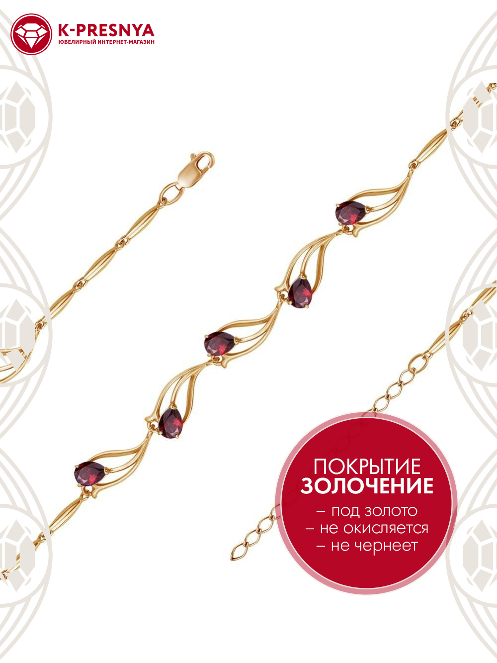 Браслет с дополнительной цепочкой 50 мм, которая позволяет регулировать размер