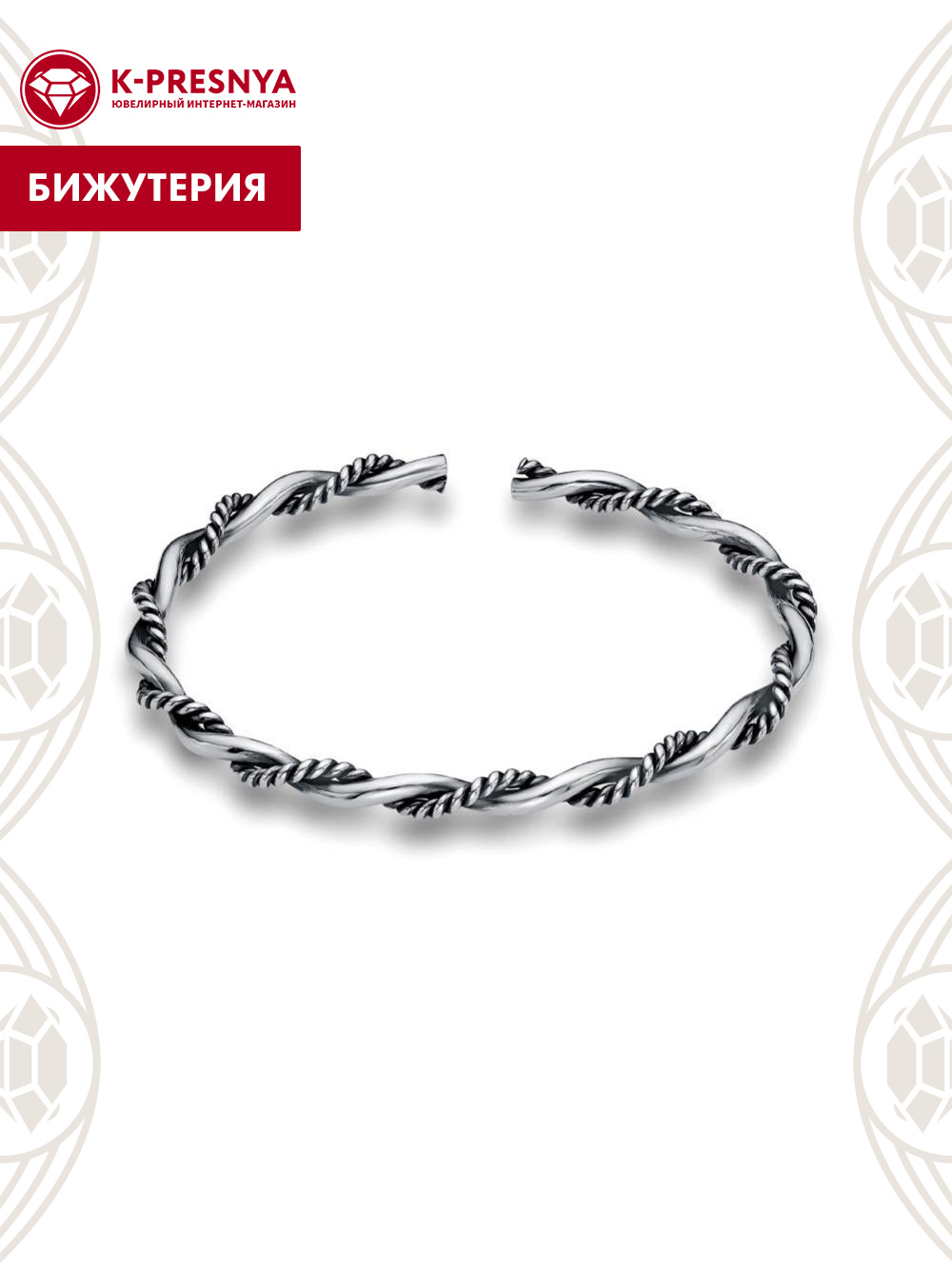 Браслет бижутерия, покрытие - серебрение с оксидированием, без вставок