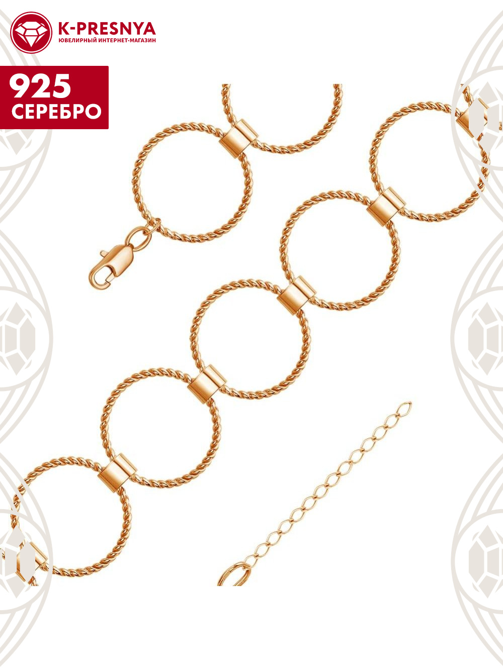 Браслет серебро 925 пробы, покрытие - золочение, без вставок