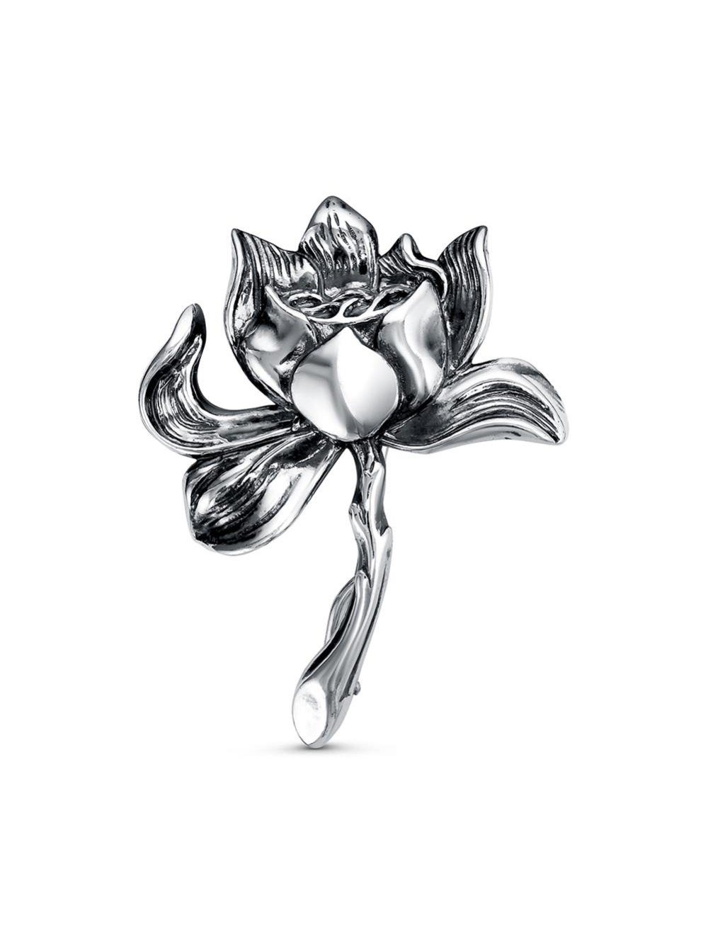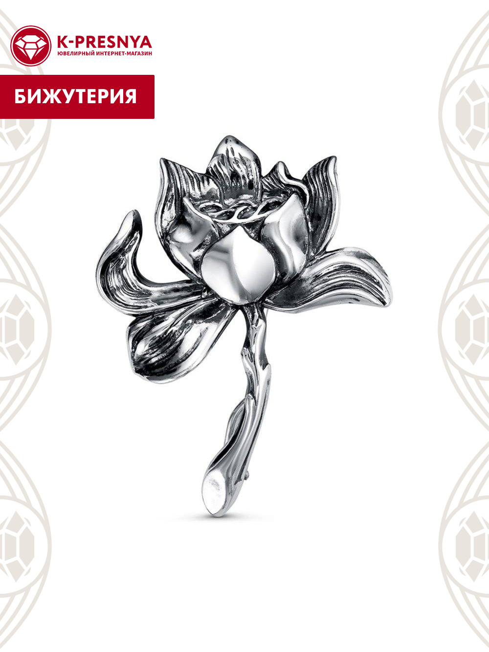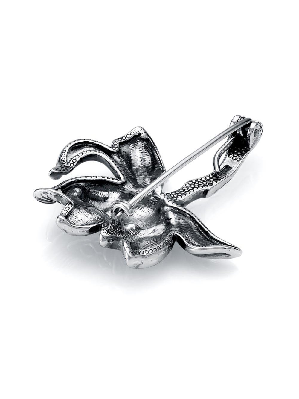 Брошь бижутерия, покрытие - серебрение с оксидированием, без вставок