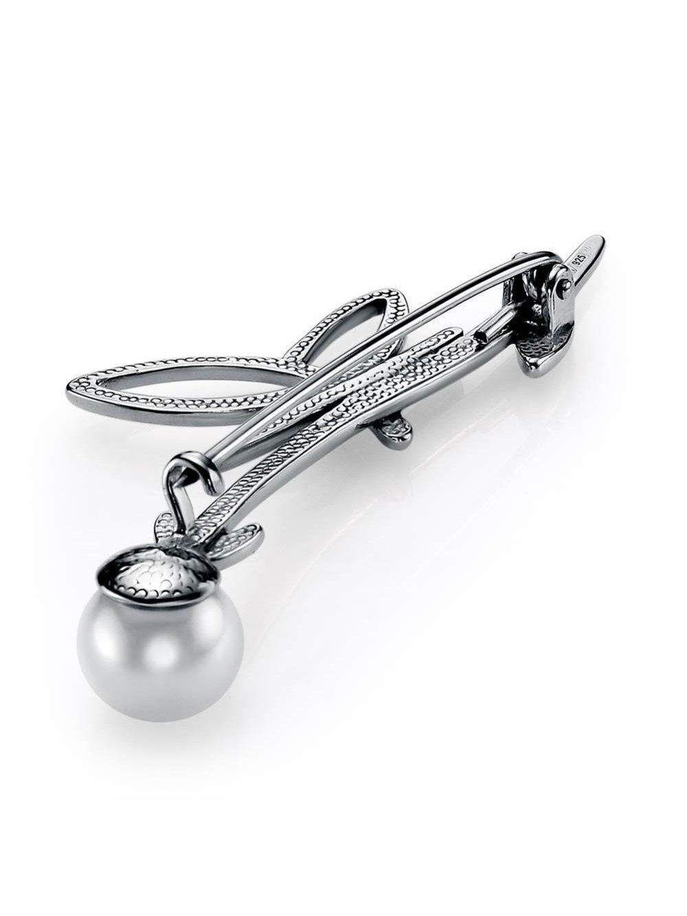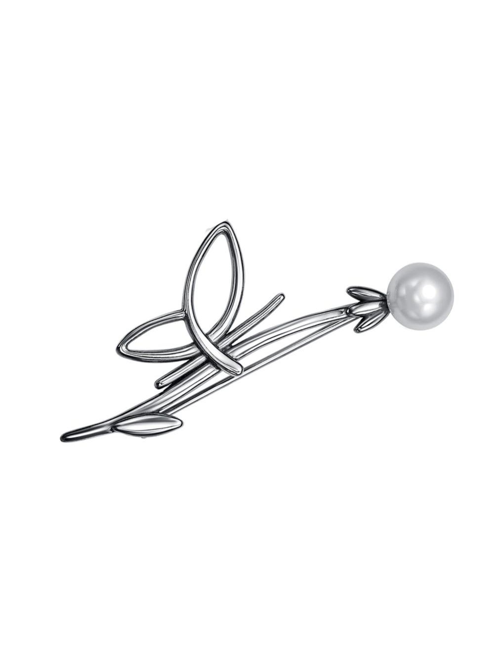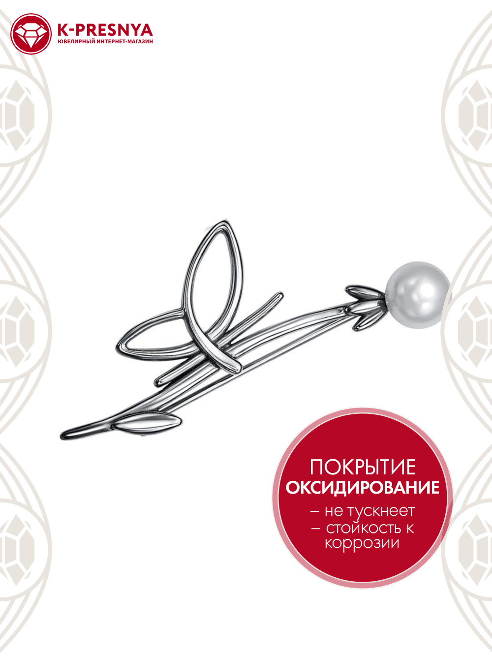 Брошь серебро 925 пробы, покрытие - оксидирование, вставка - имитация жемчуга