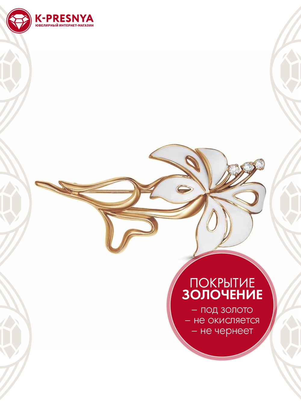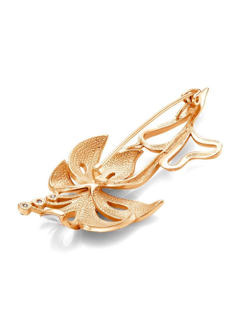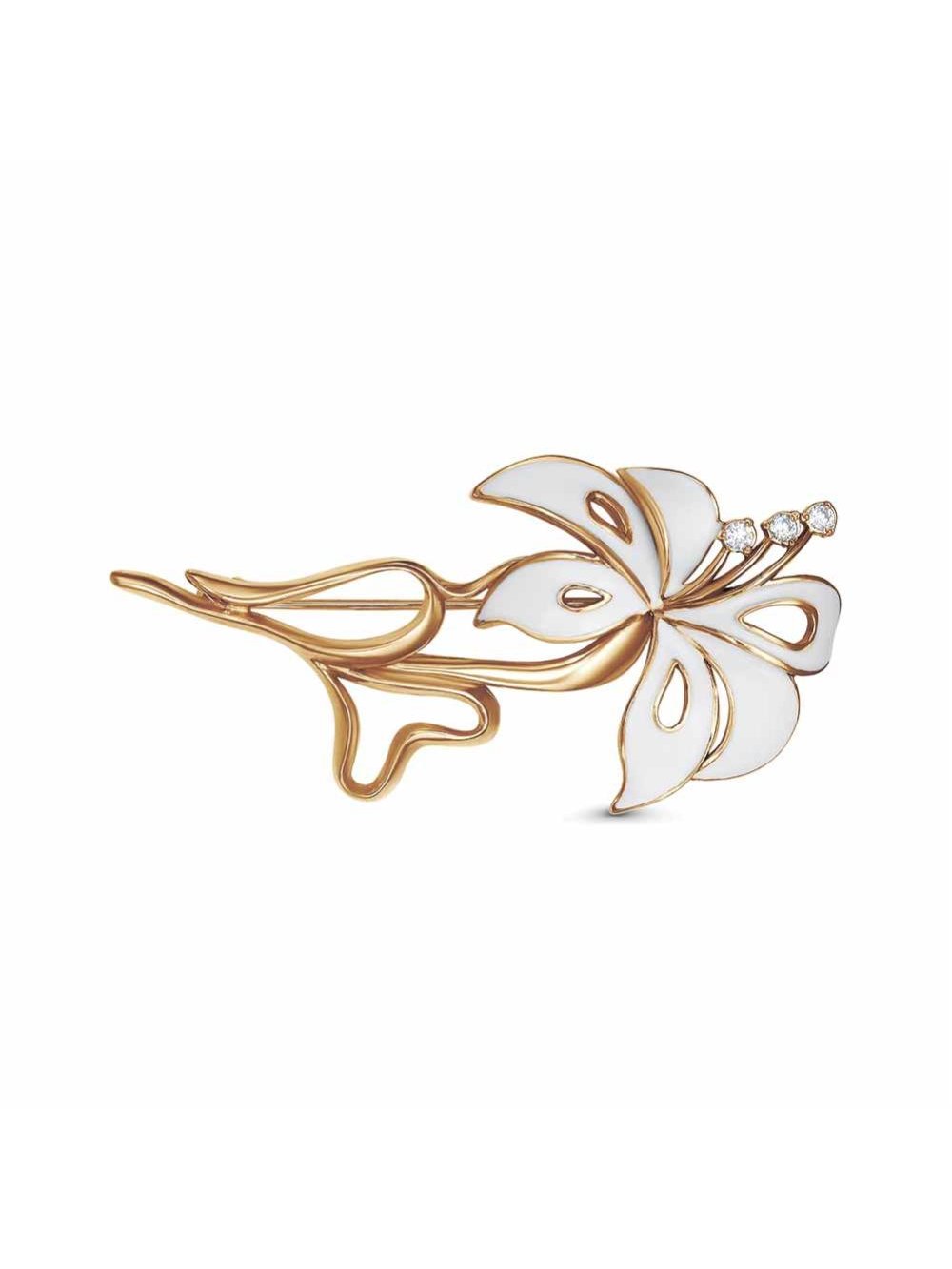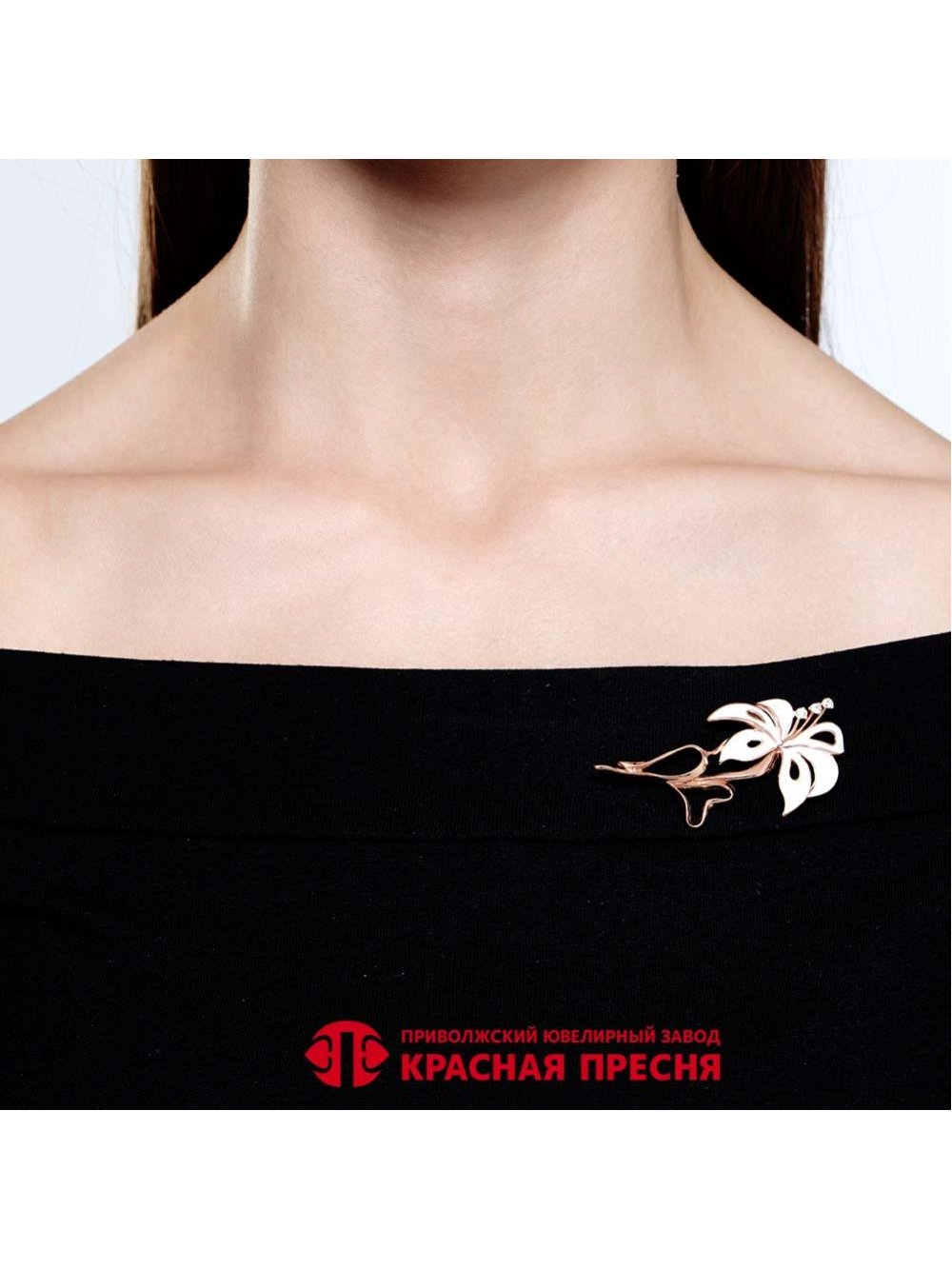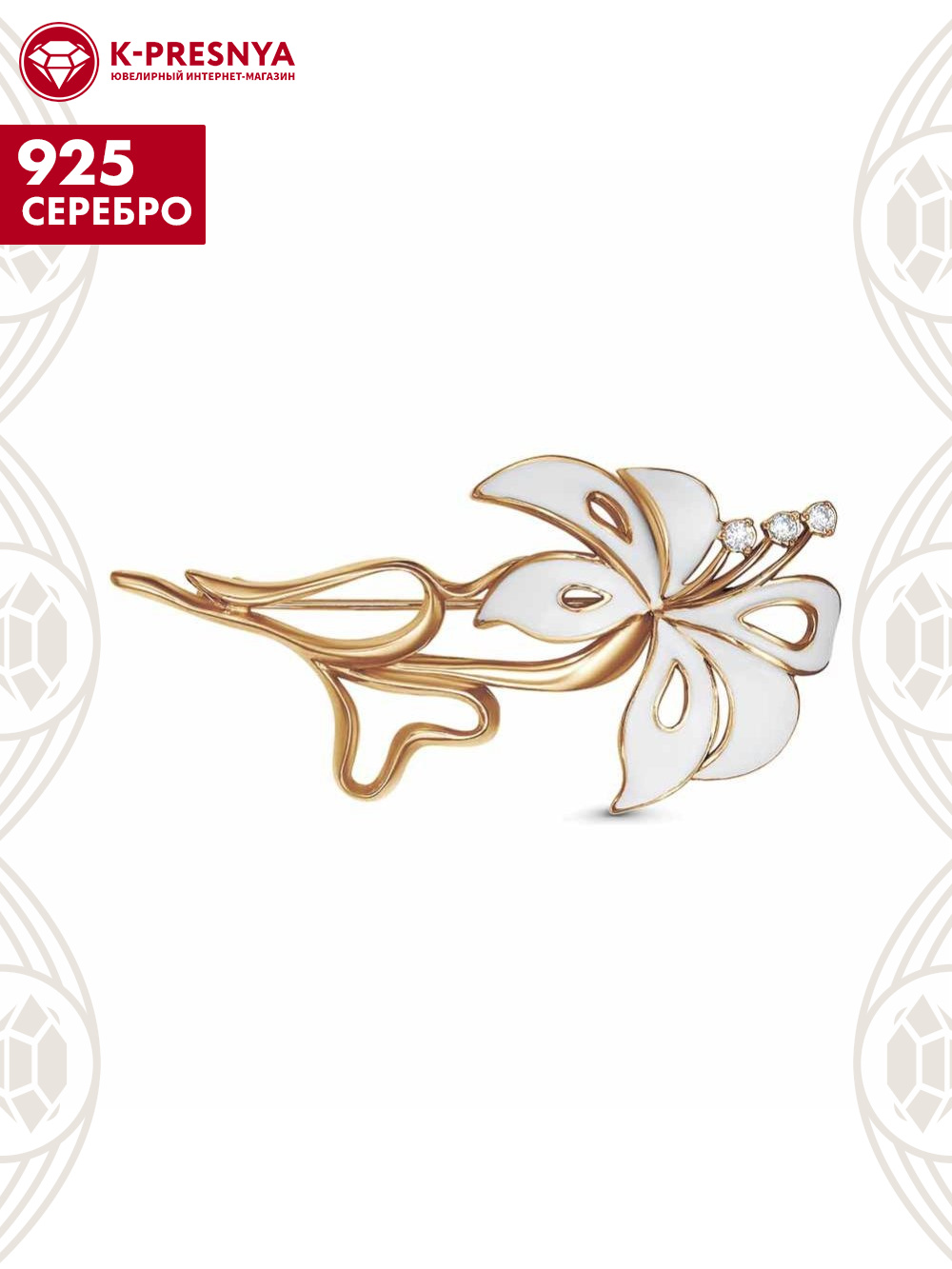 Брошь серебро 925 пробы, покрытие - золочение, отделка - эмаль, вставка - фианит (недрагоценный камень)