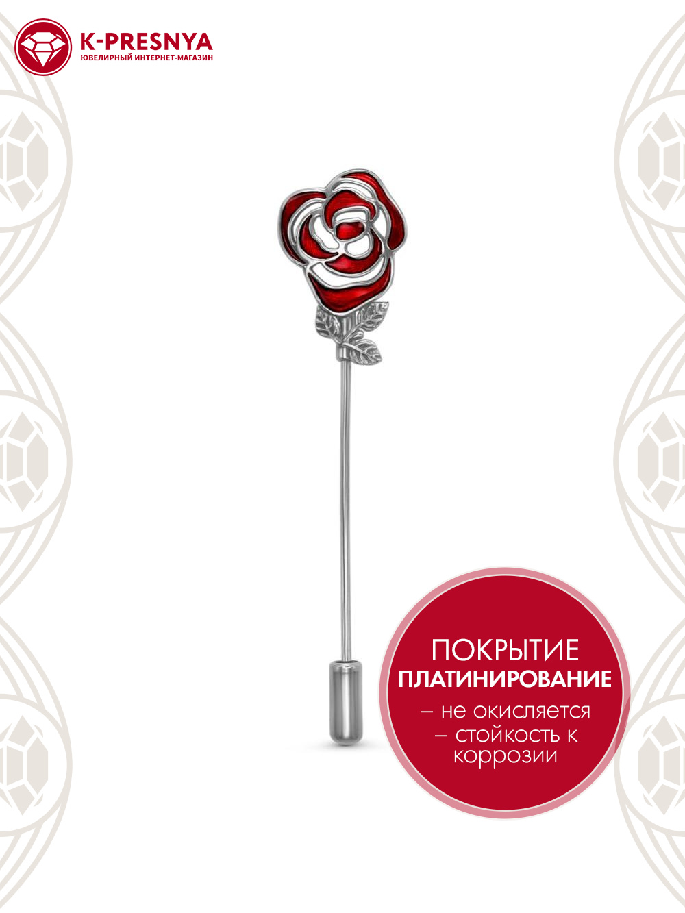 Брошь бижутерия, покрытие - платинирование, отделка - эмаль, без вставок