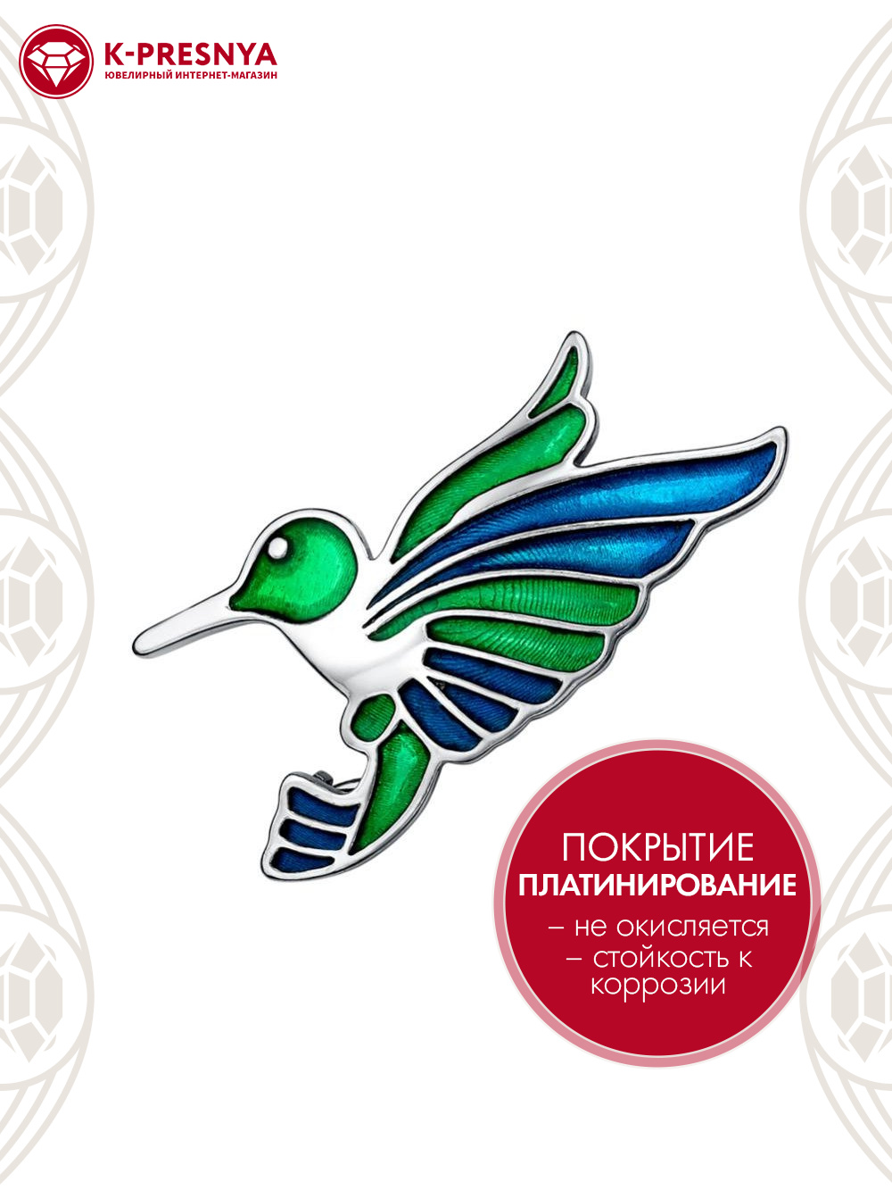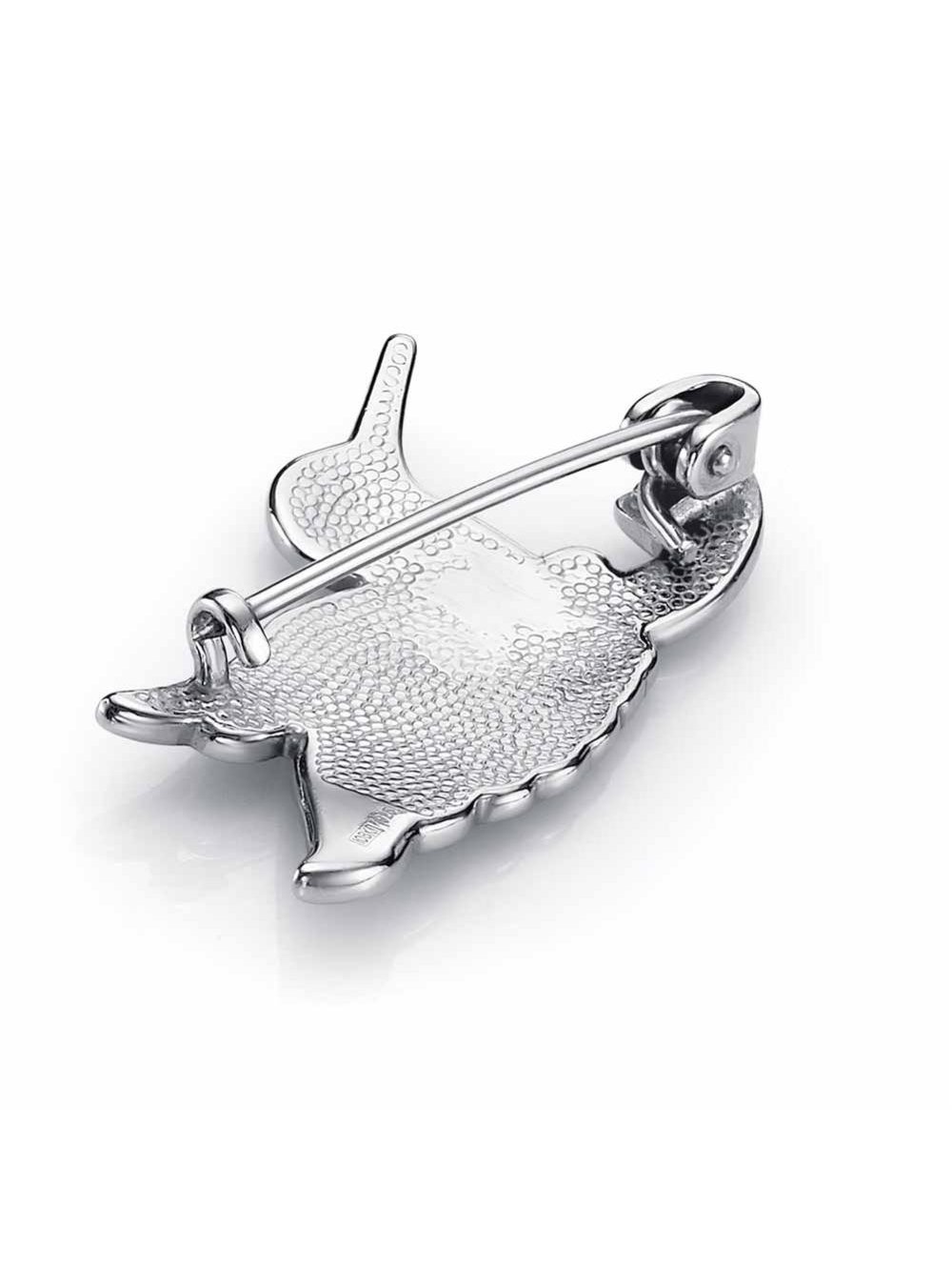 Брошь серебро 925 пробы, покрытие - платинирование, отделка - эмаль, без вставок