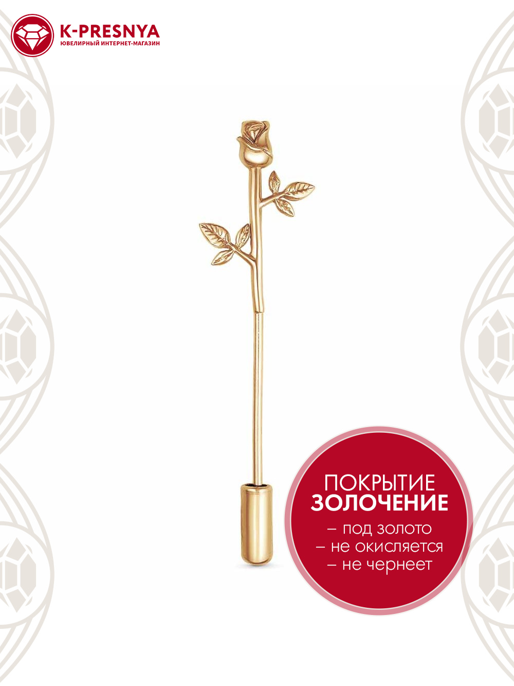 Брошь бижутерия, покрытие - золочение, без вставок