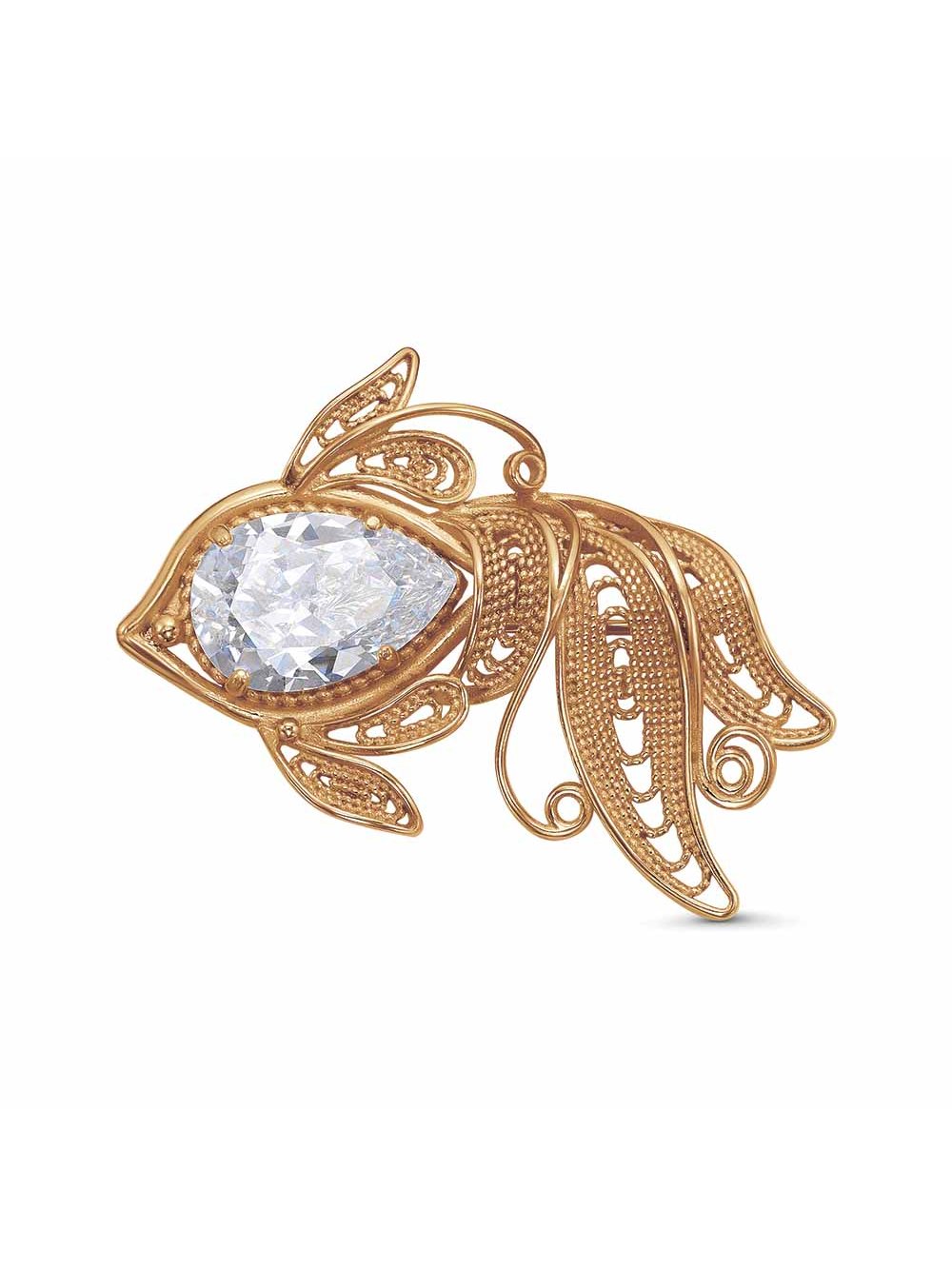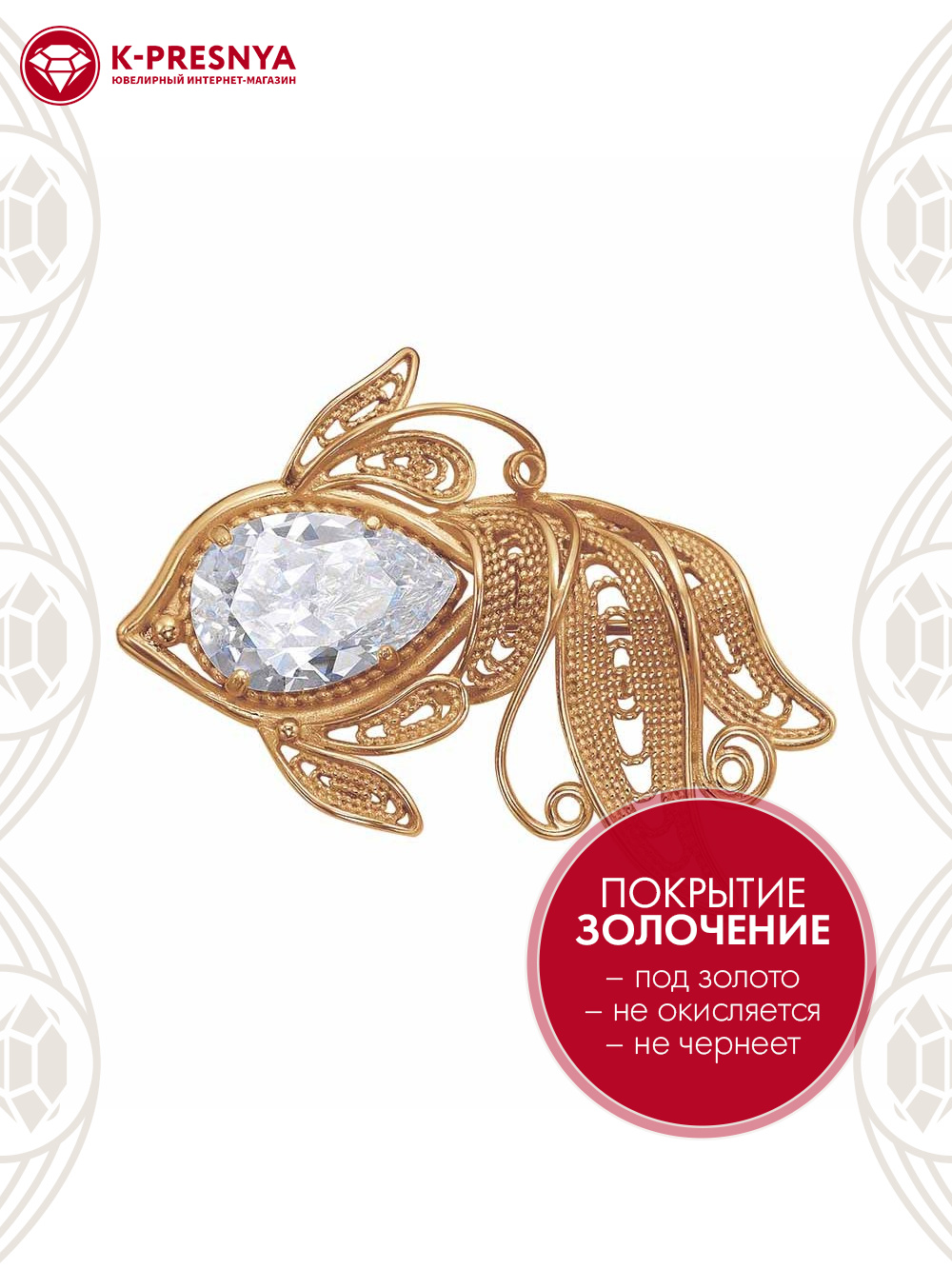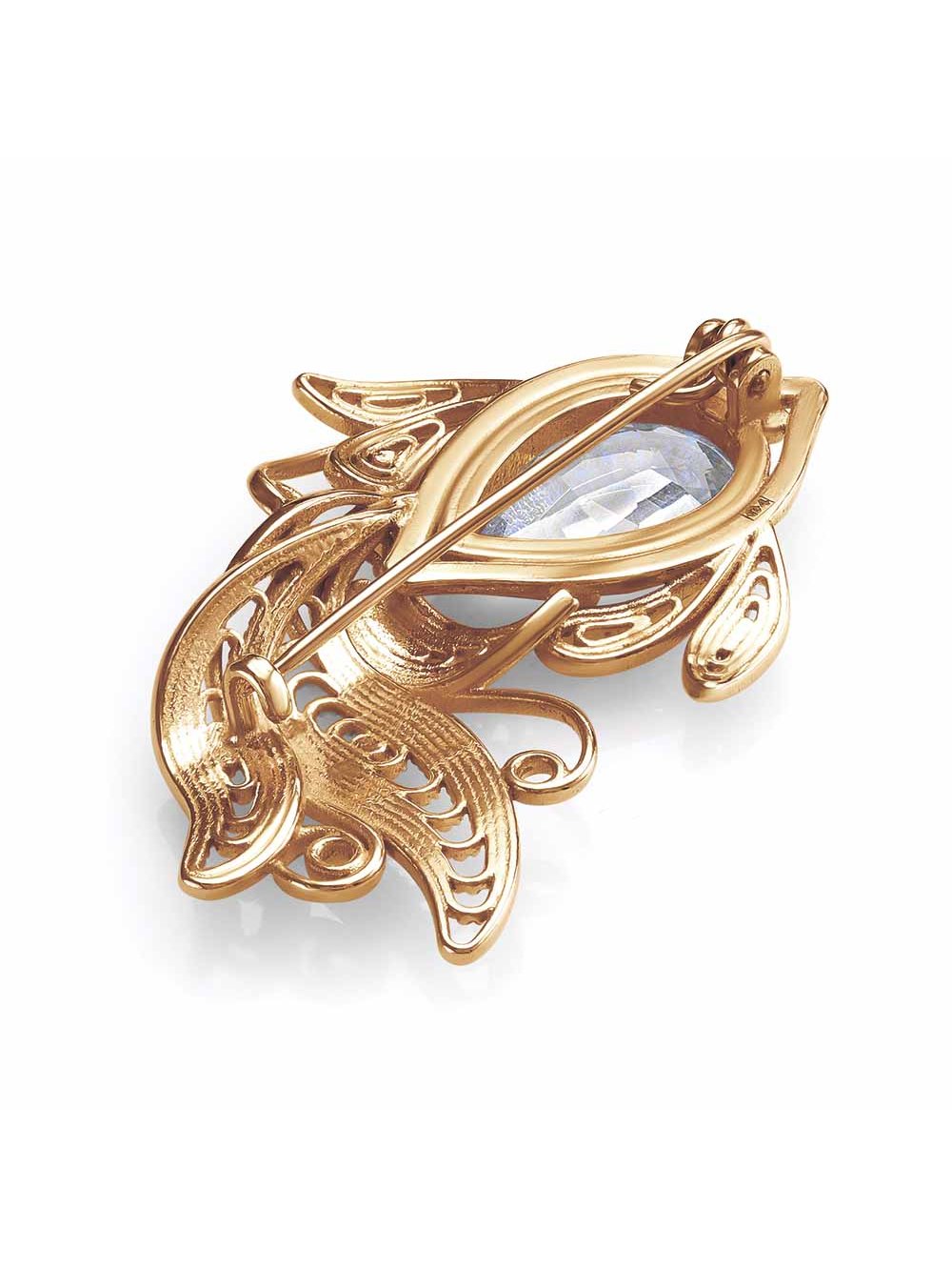 Брошь бижутерия, покрытие - золочение, вставка - фианит (недрагоценный камень)