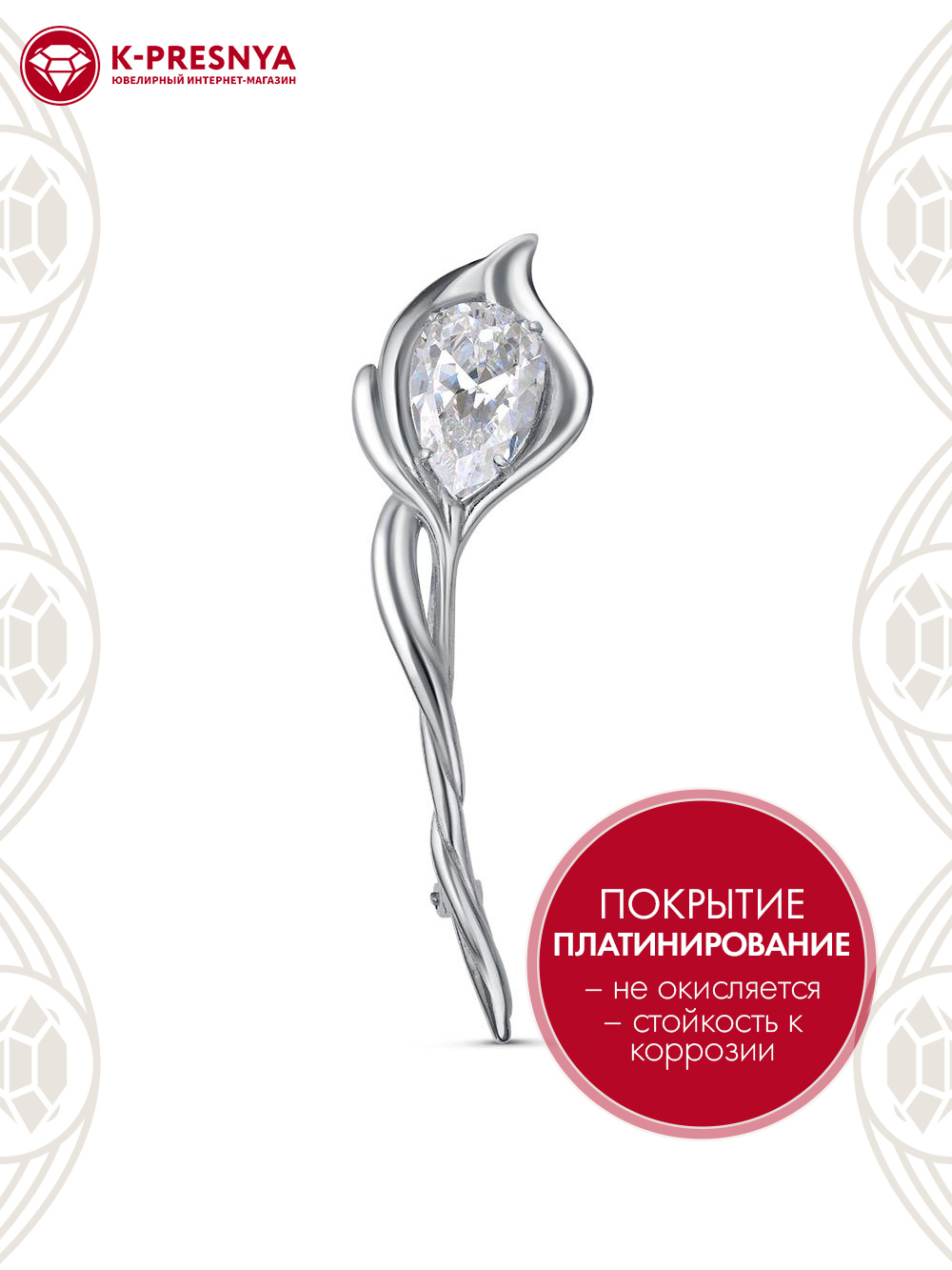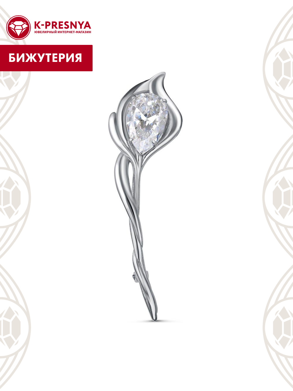 Брошь бижутерия, покрытие - платинирование, вставка - фианит (недрагоценный камень)
