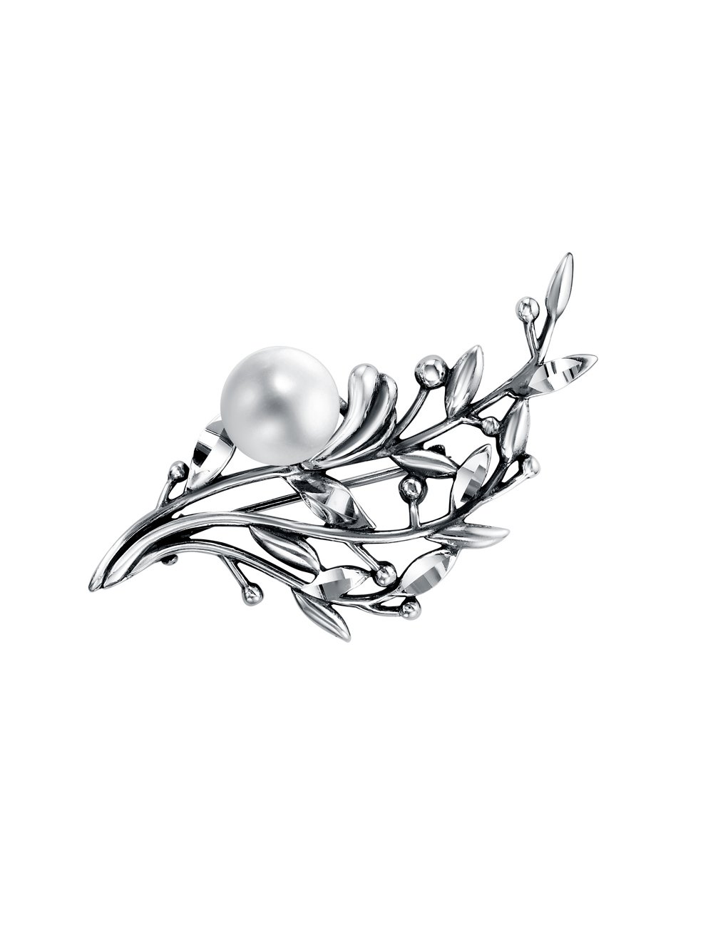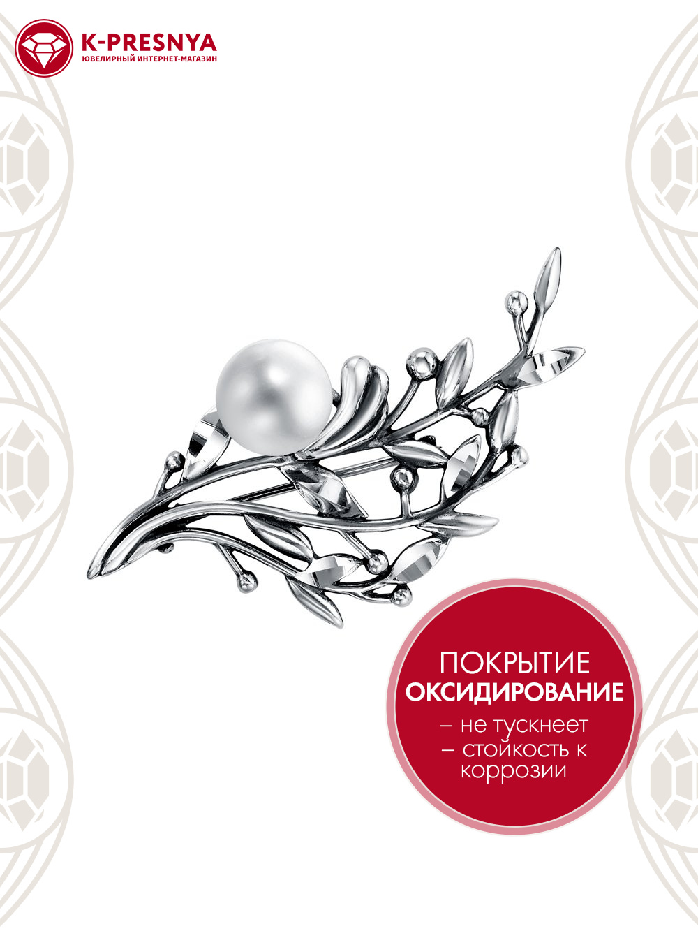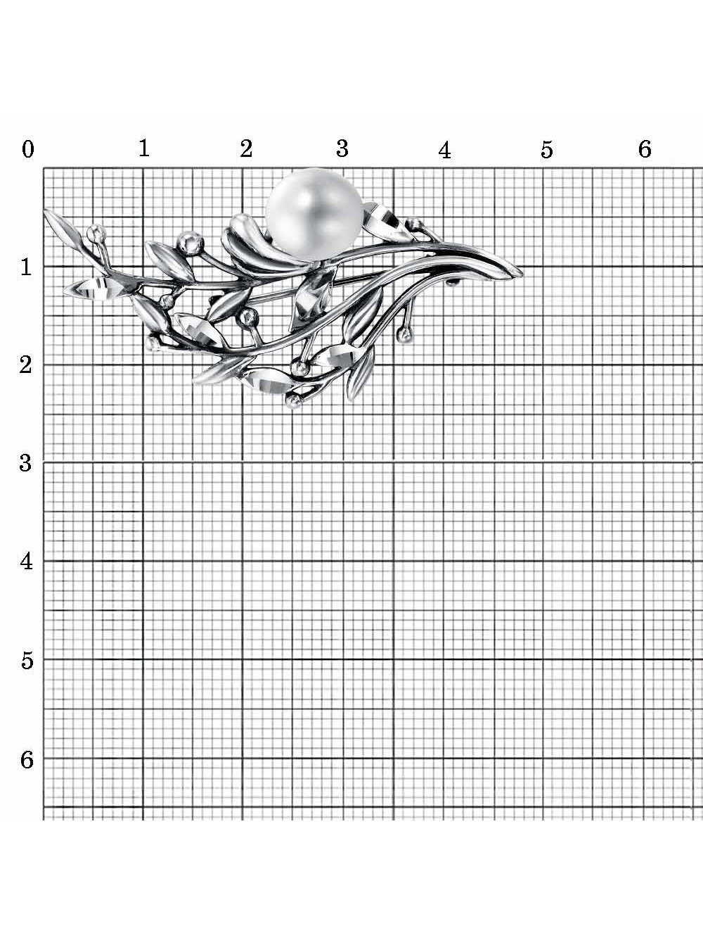 Брошь серебро 925 пробы, покрытие - оксидирование, отделка - алмазная грань, вставка - культивированный жемчуг