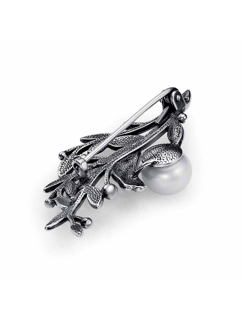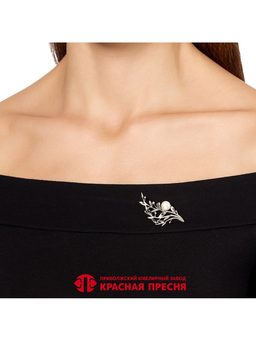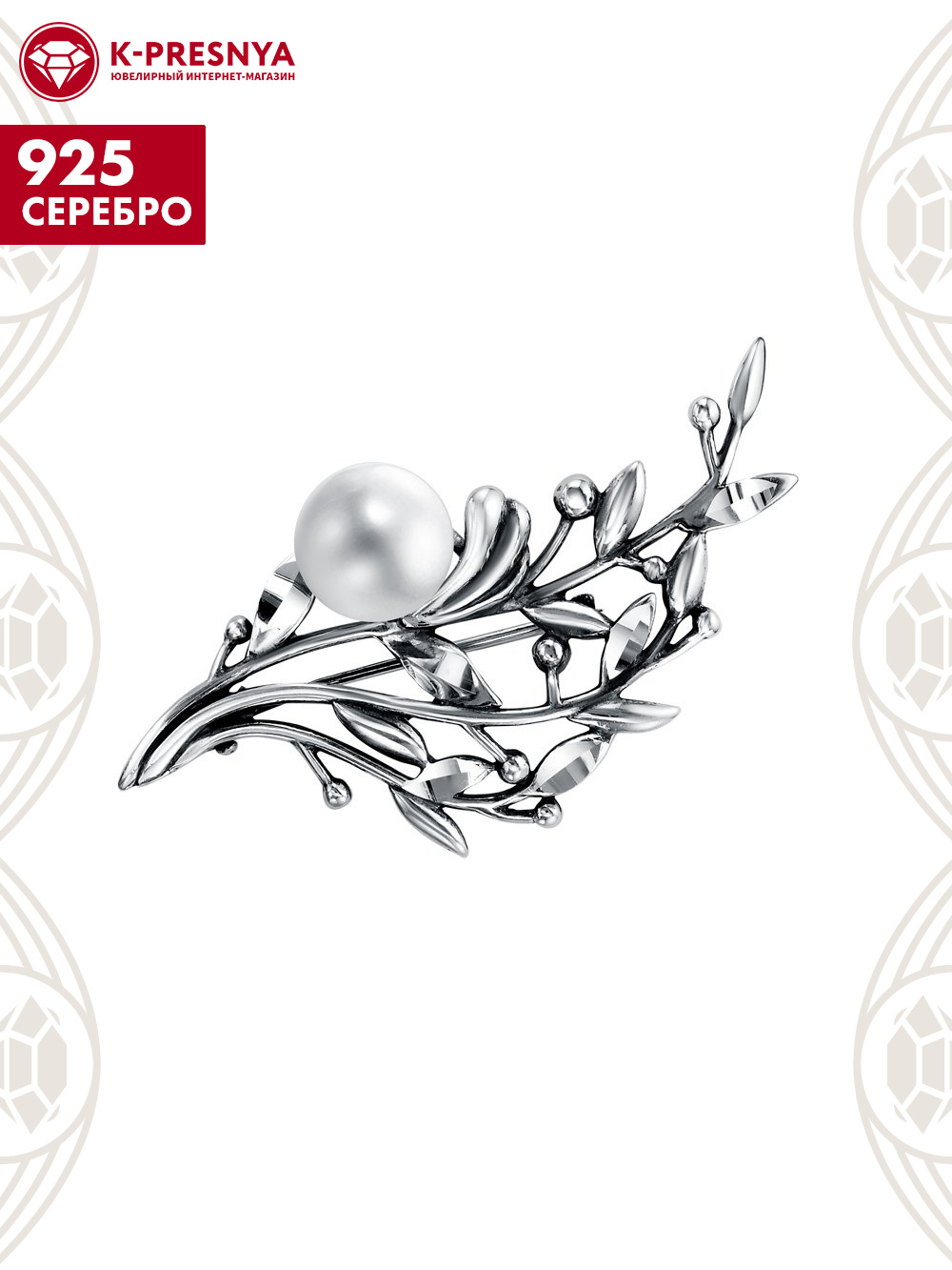 Брошь серебро 925 пробы, покрытие - оксидирование, отделка - алмазная грань, вставка - культивированный жемчуг