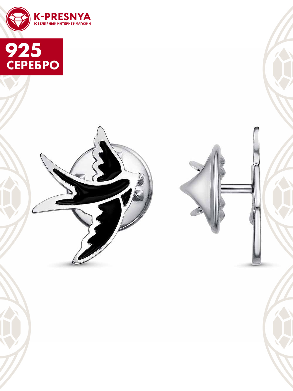 Брошь серебро 925 пробы, покрытие - платинирование, отделка - эмаль, без вставок