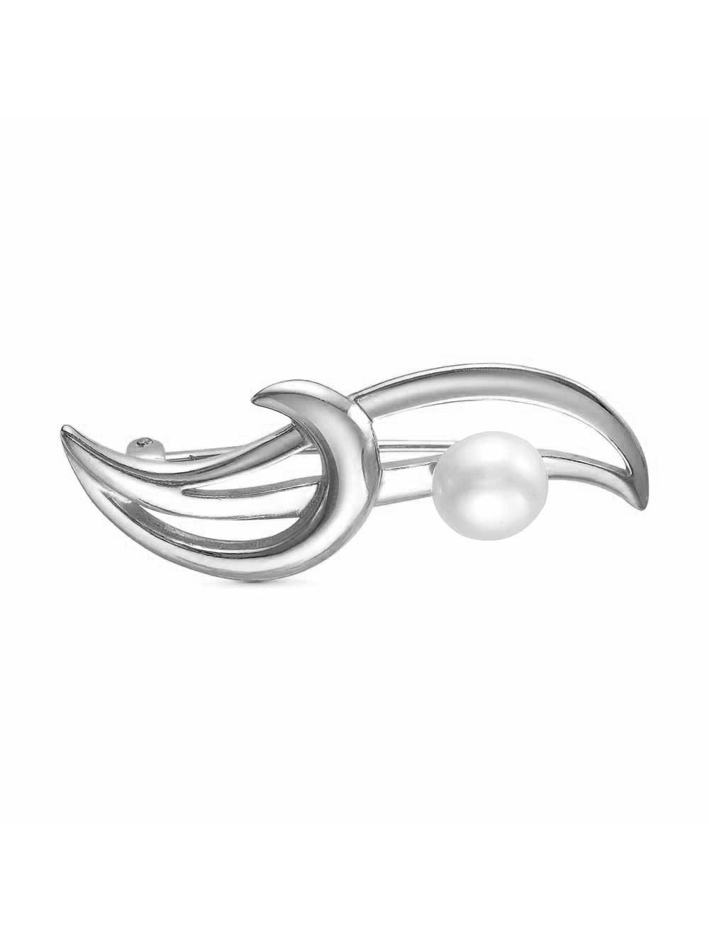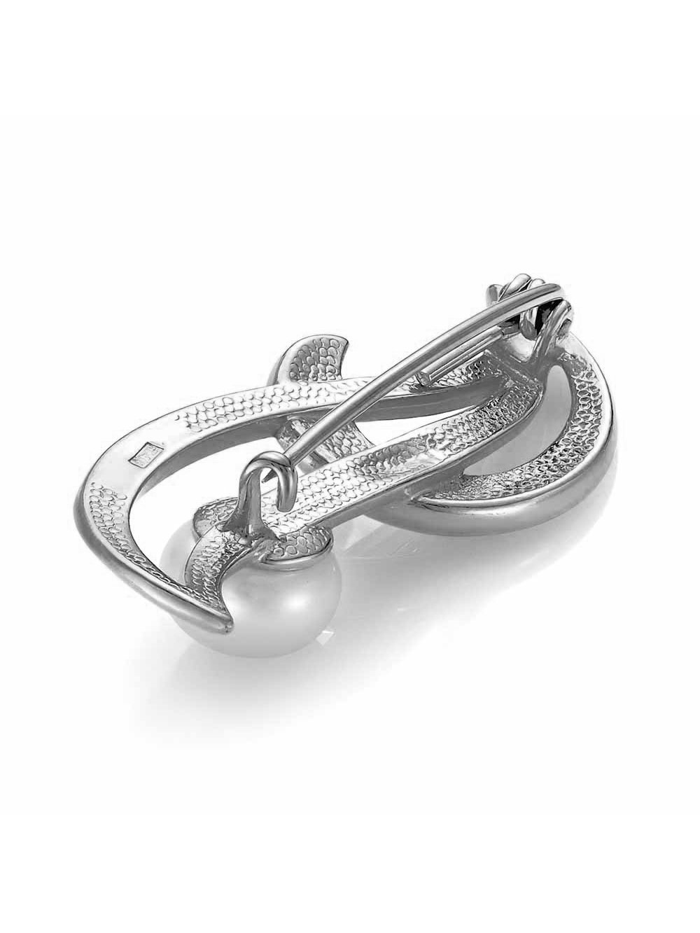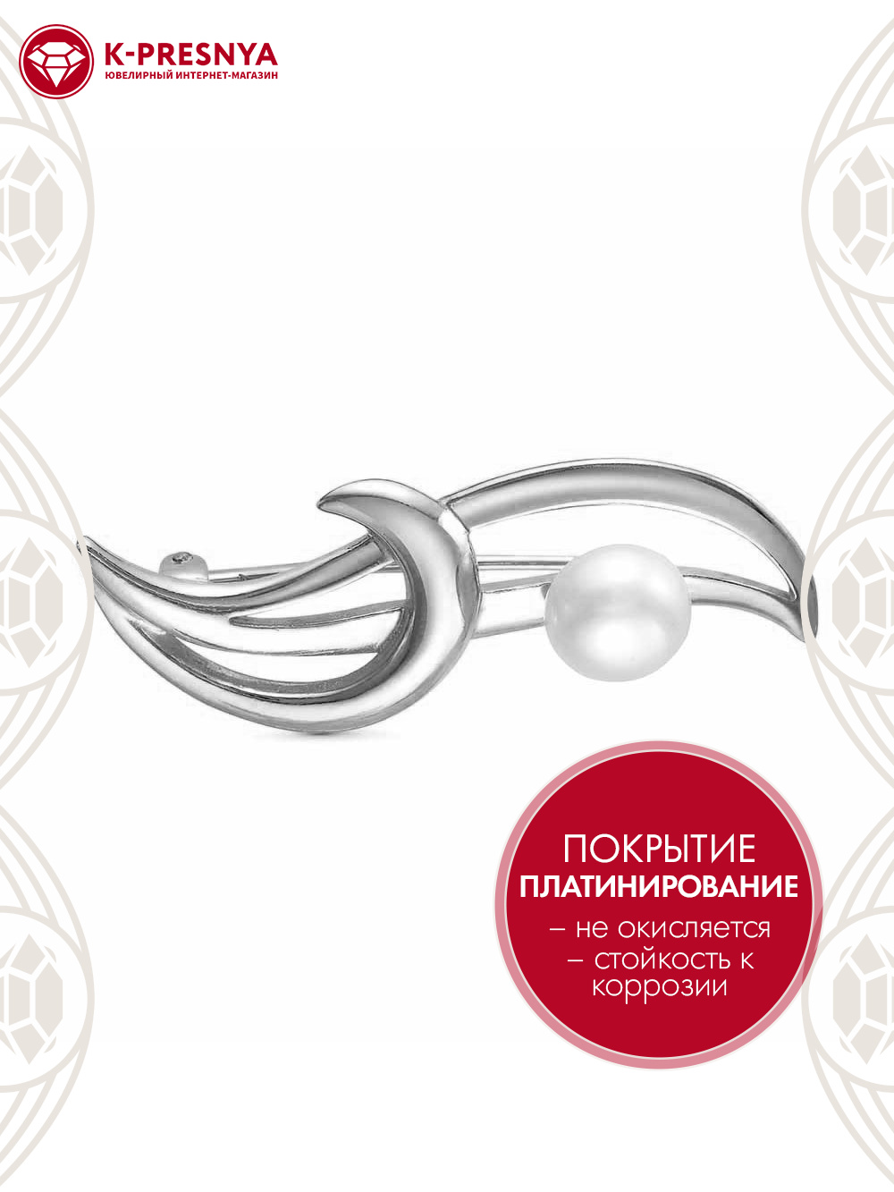 Брошь бижутерия, покрытие - платинирование, вставка - культивированный жемчуг