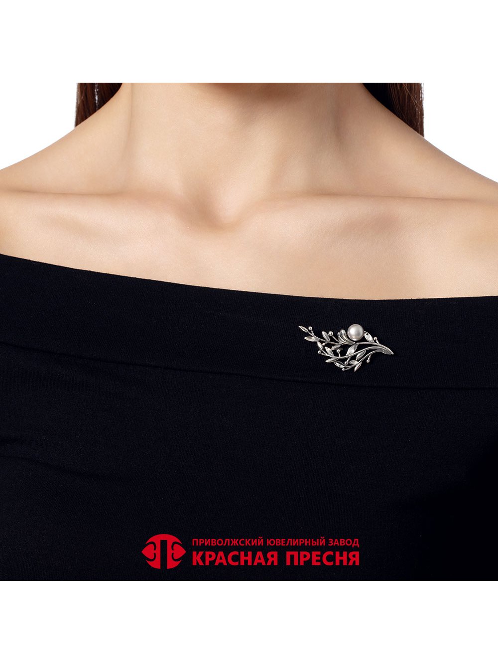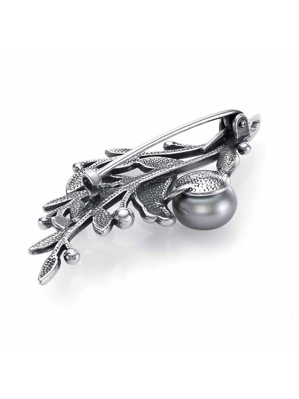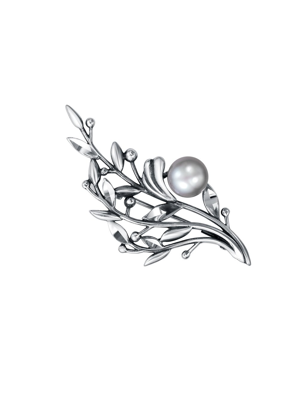 Брошь серебро 925 пробы, покрытие - оксидирование, отделка - алмазная грань, вставка - культивированный жемчуг