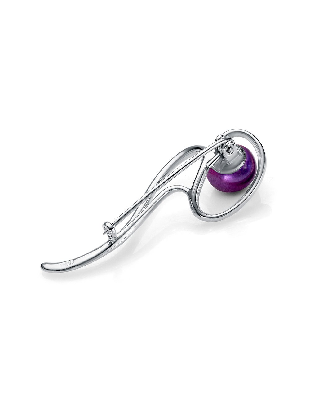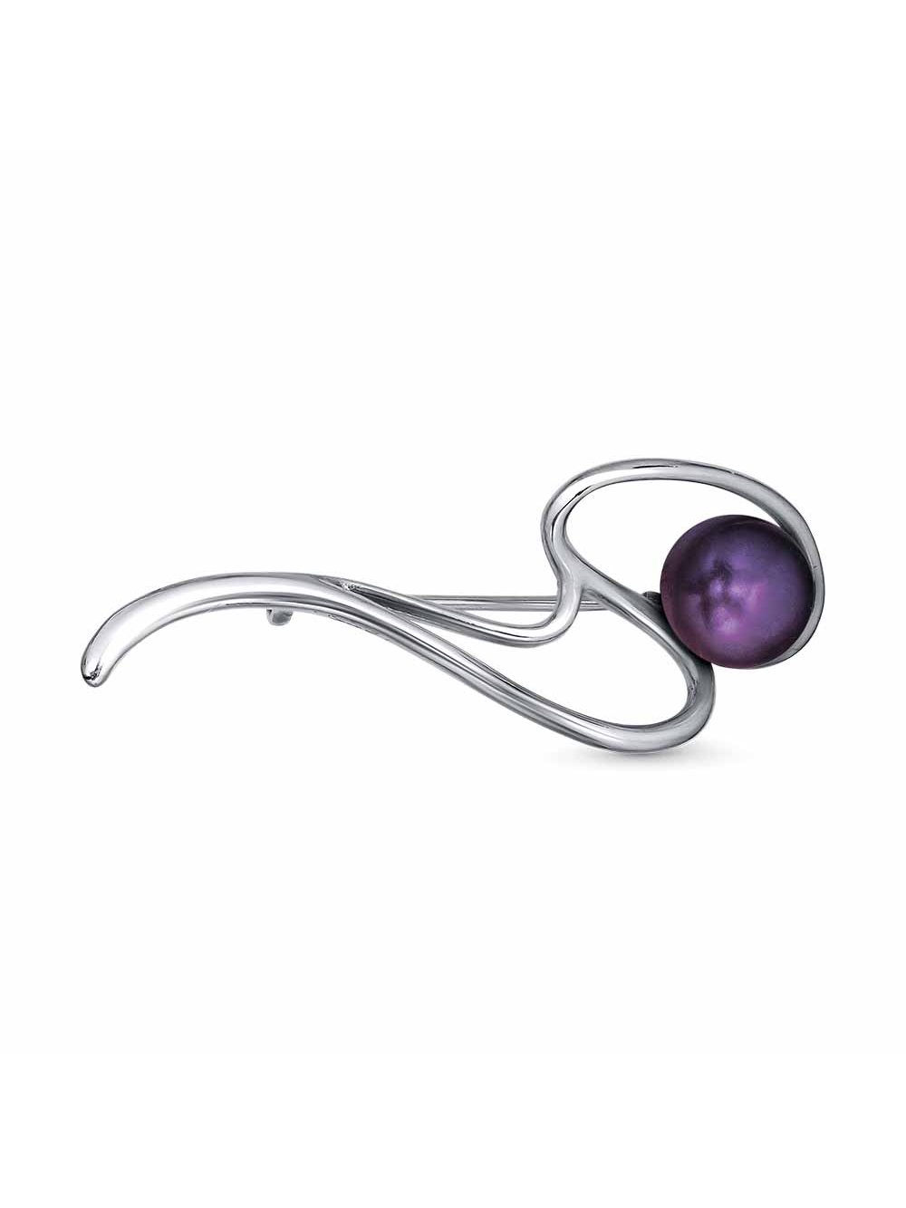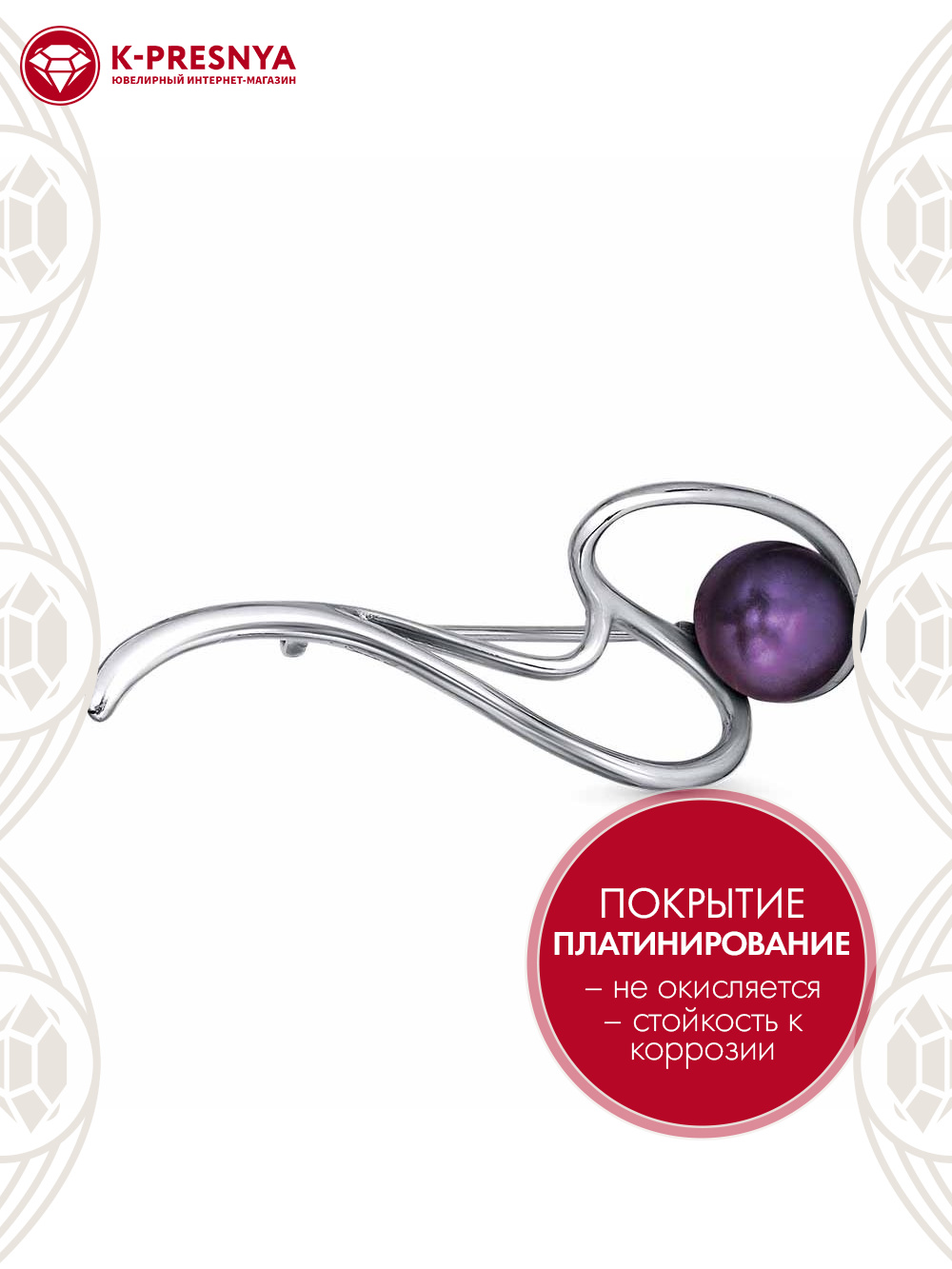 Брошь бижутерия, покрытие - платинирование, вставка - культивированный жемчуг