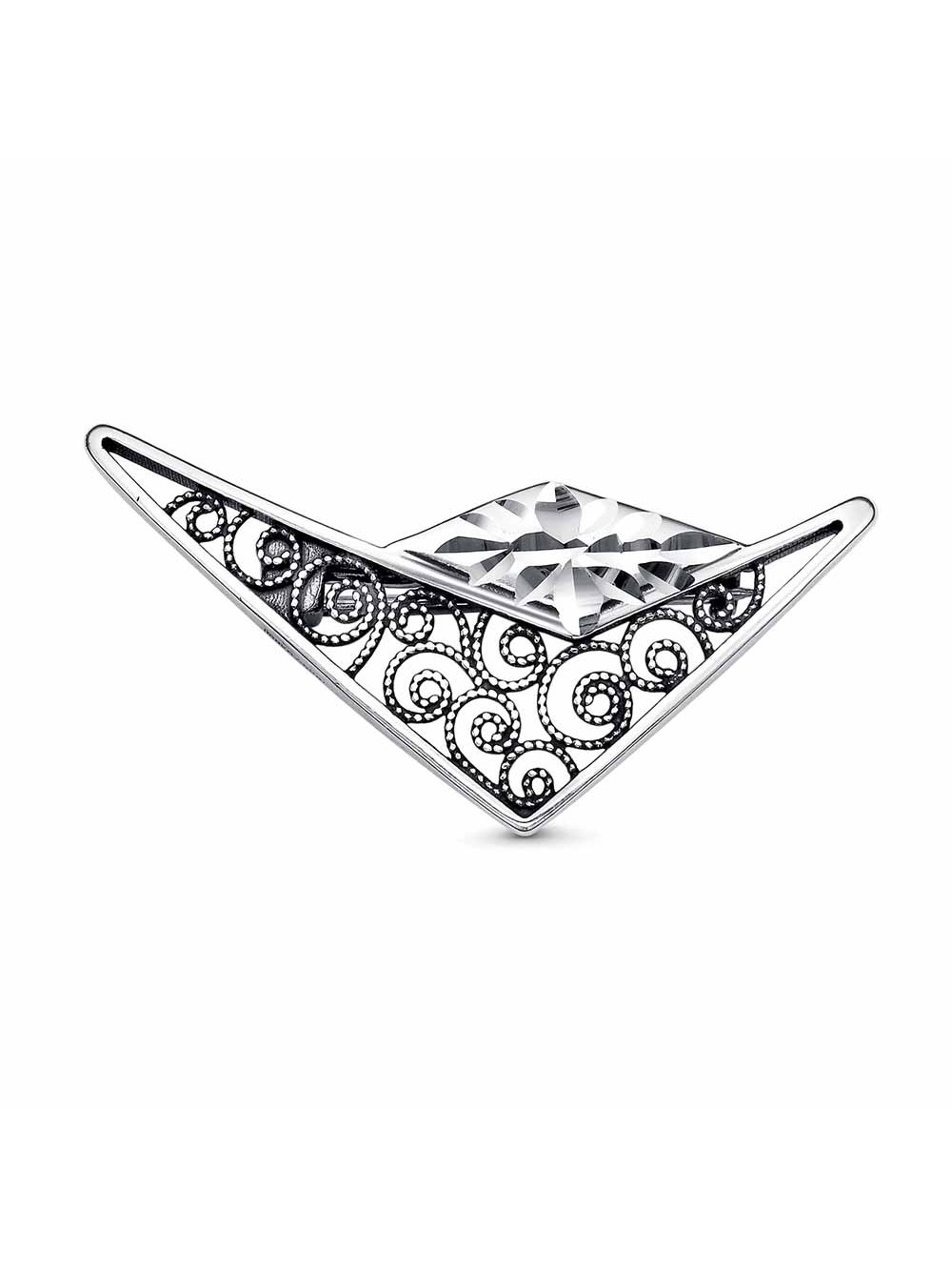 Брошь бижутерия, покрытие - серебрение с оксидированием, отделка - алмазная грань, без вставок