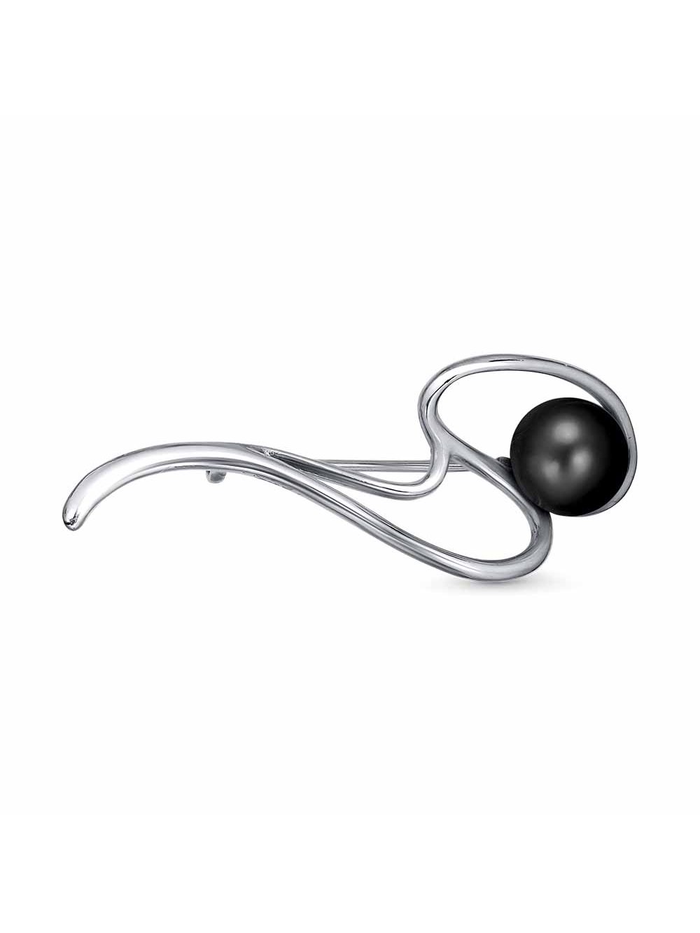Брошь бижутерия, покрытие - платинирование, вставка - культивированный жемчуг