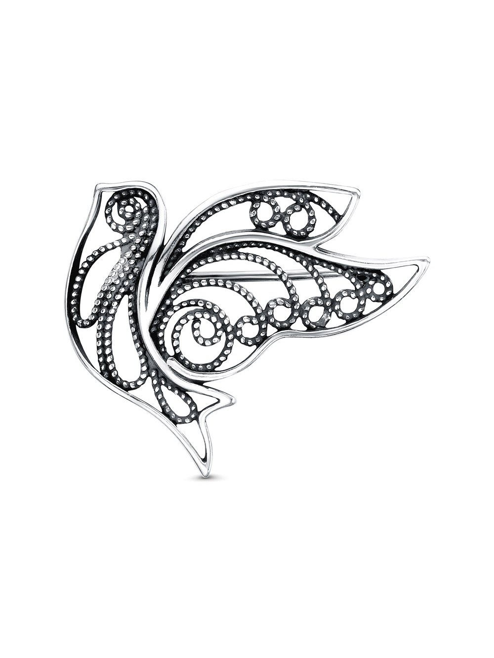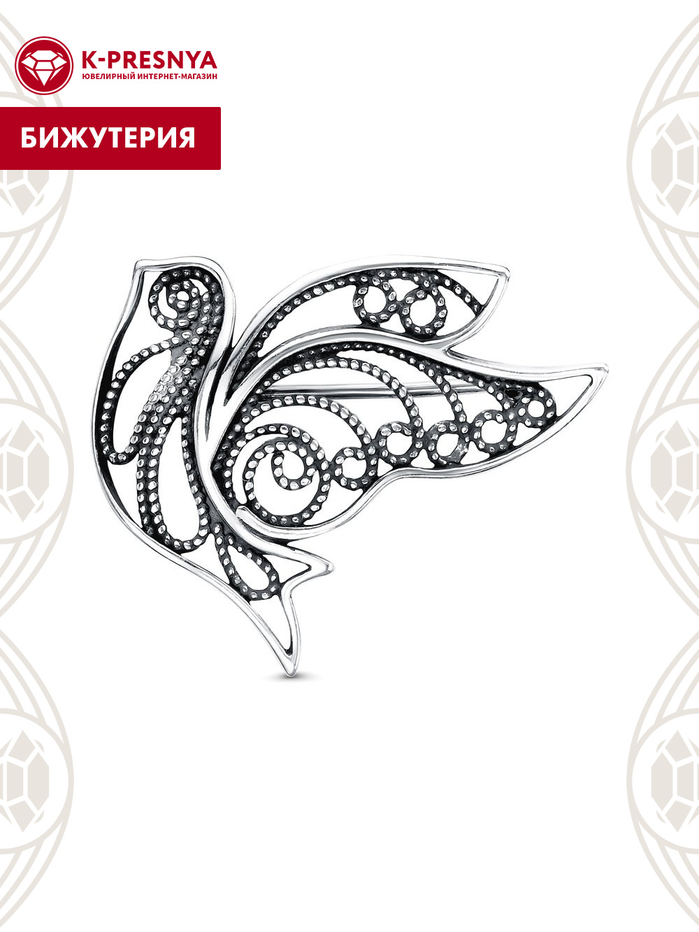 Брошь бижутерия, покрытие - серебрение с оксидированием, без вставок