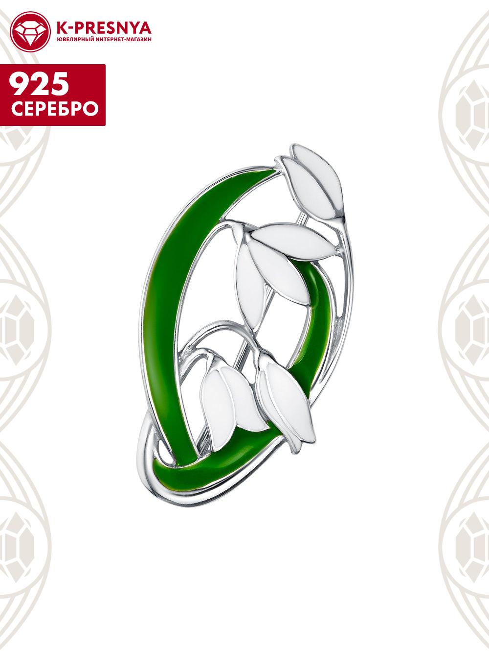 Брошь серебро 925 пробы, покрытие - родирование, отделка - эмаль, без вставок