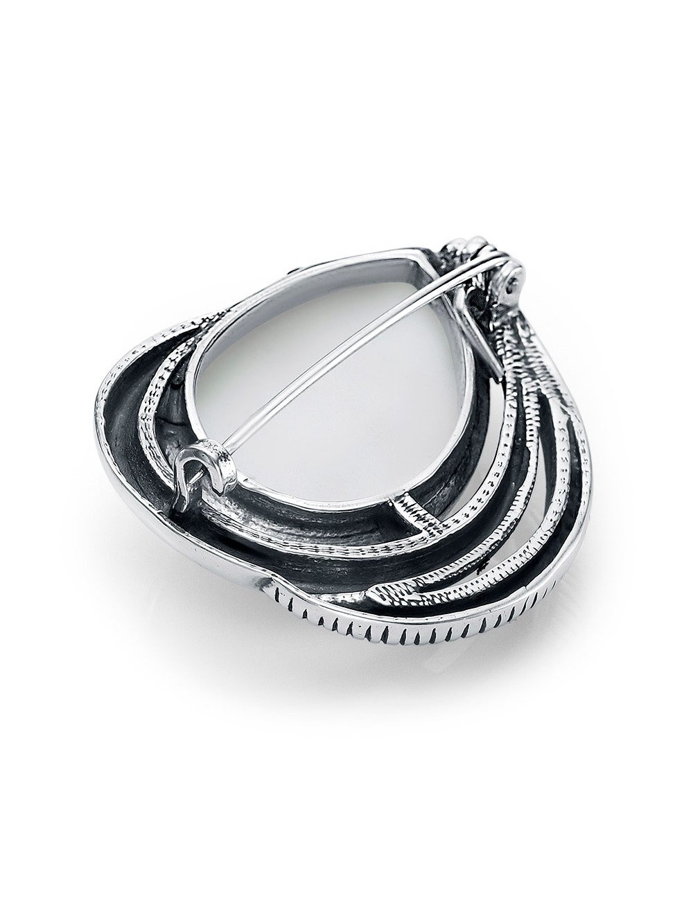 Брошь бижутерия, покрытие - серебрение с оксидированием, вставка - стекло ювелирное собственной огранки